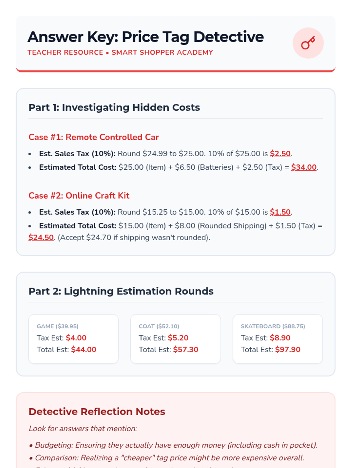A comprehensive financial literacy unit for 4th graders focused on the mathematics and logic of comparison shopping. Students learn to navigate price tags, calculate unit prices, evaluate brand value, and assess long-term quality to become savvy consumers.
