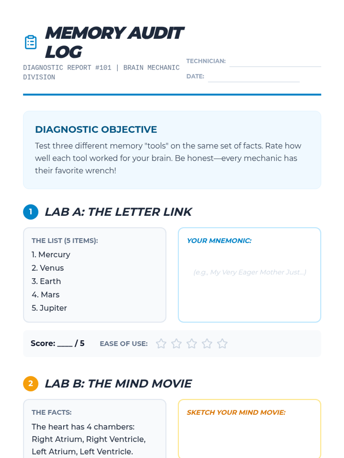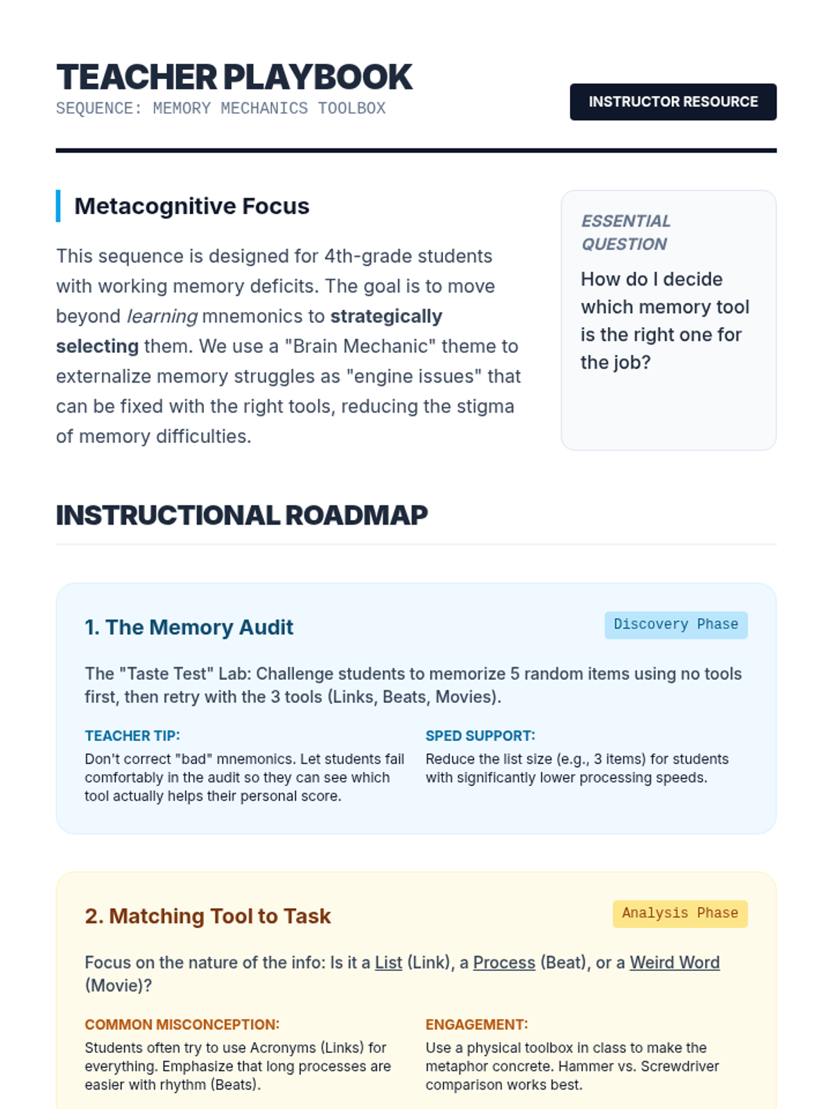 A metacognitive sequence for 4th graders to audit, select, and apply mnemonic devices to their own learning, culminating in a personalized memory toolbox.