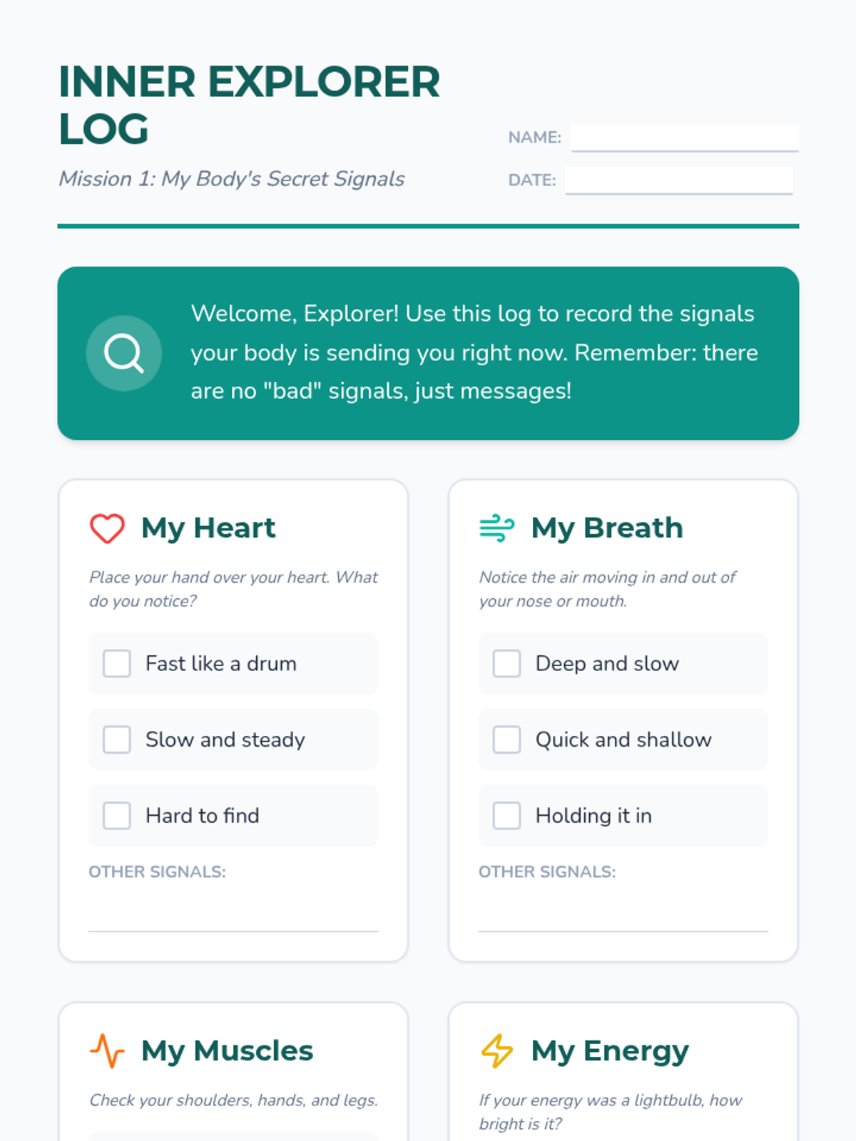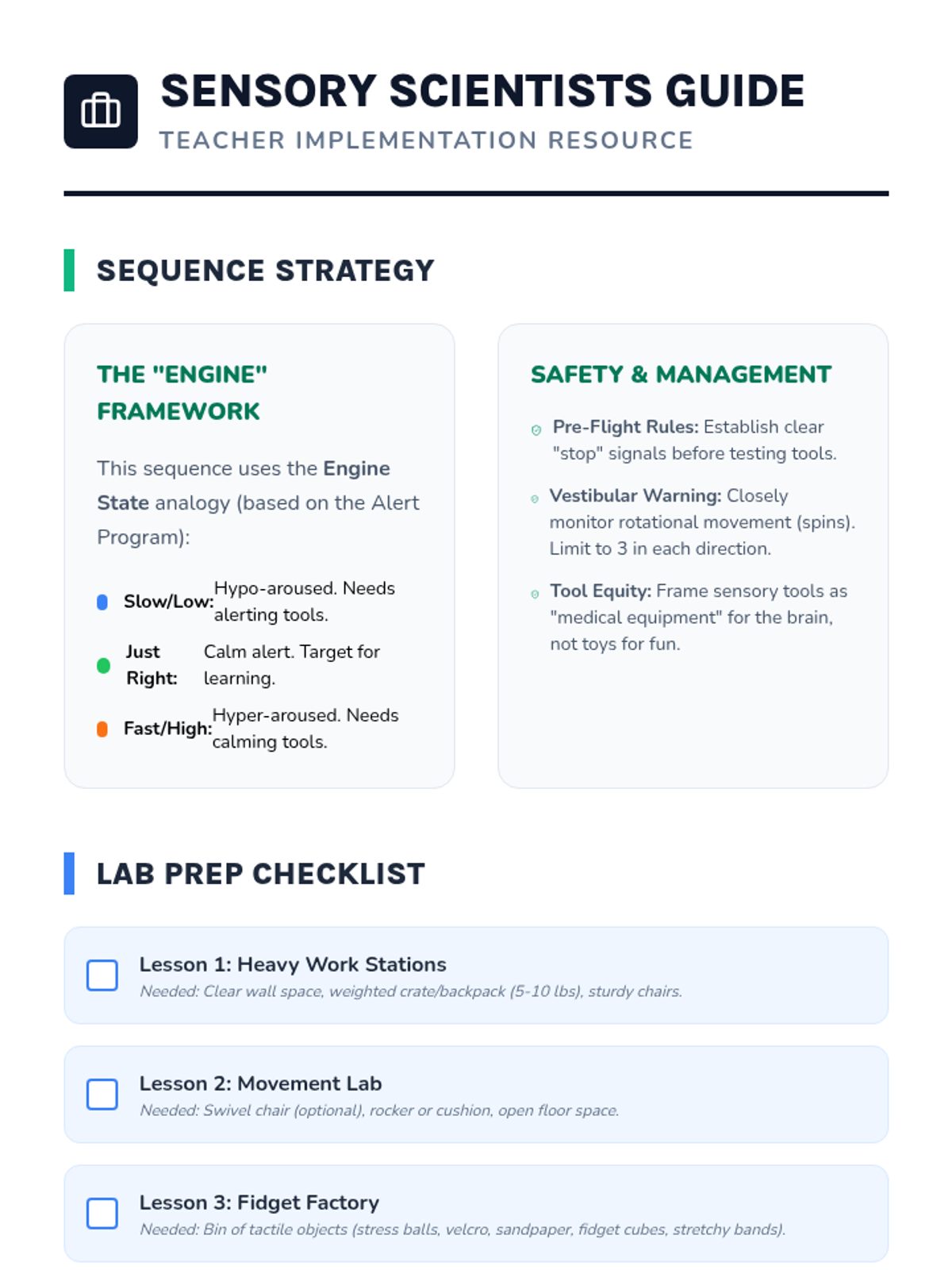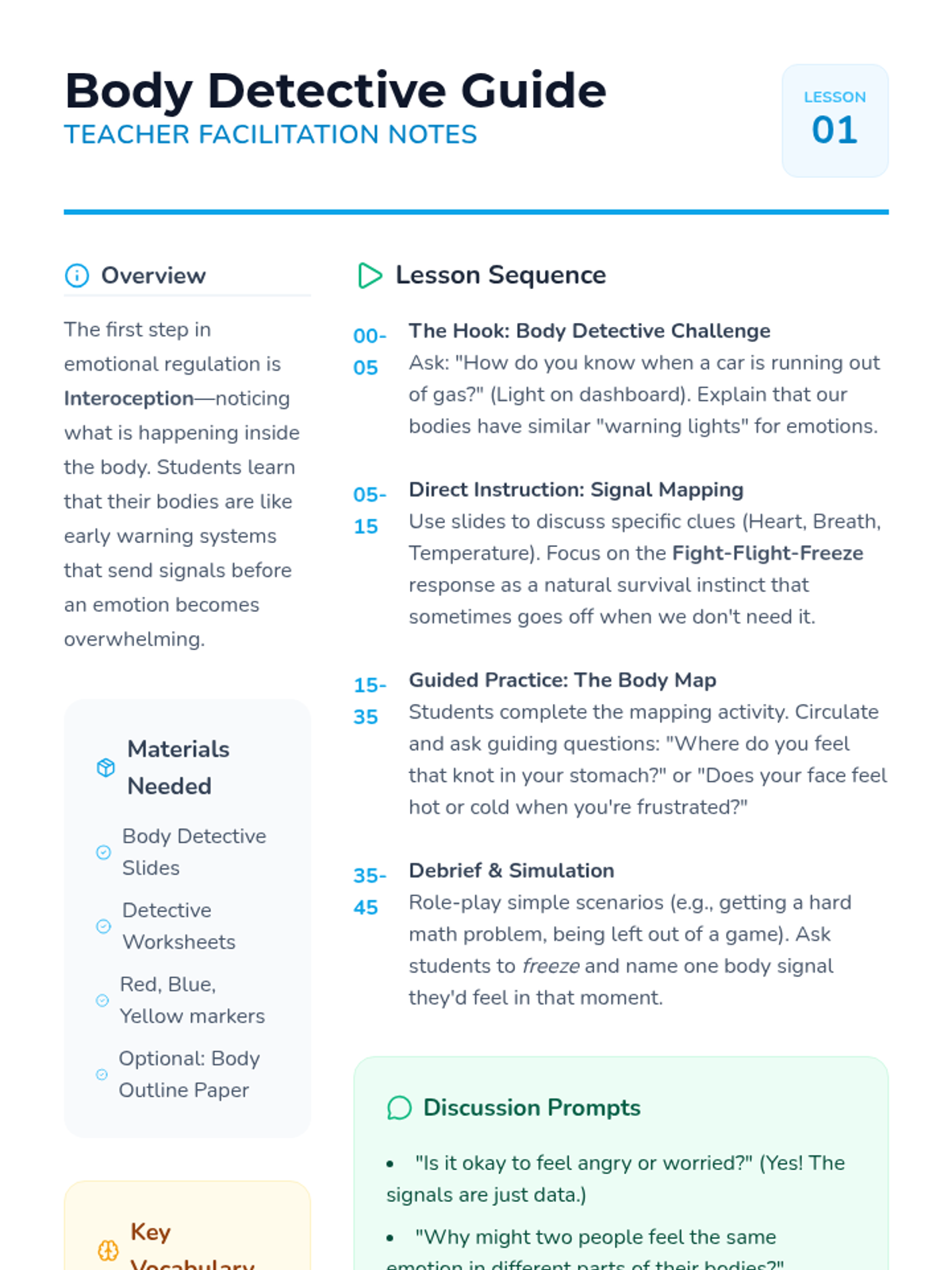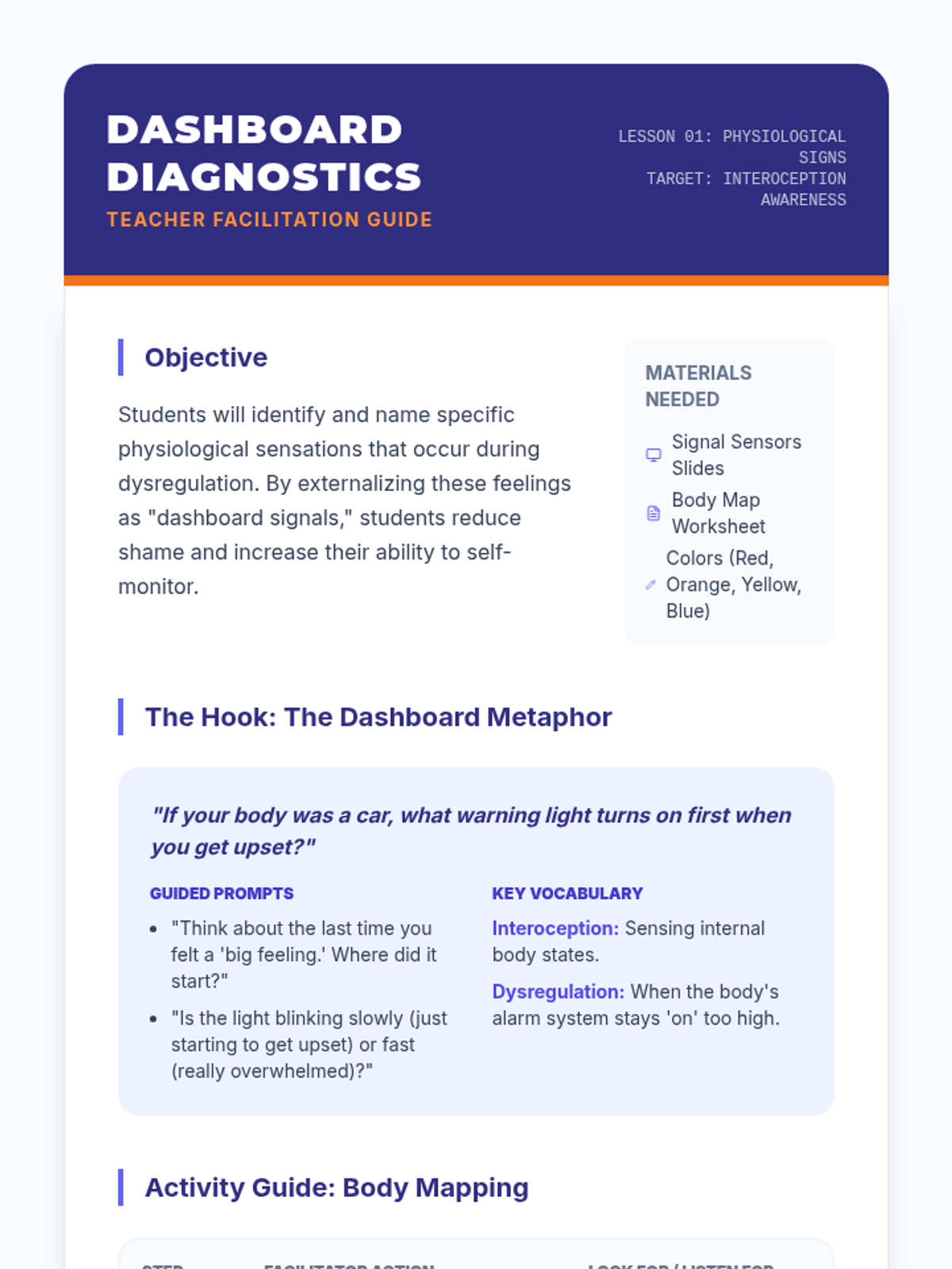 A 5-lesson sequence for 4th Grade students focused on interoception and self-regulation. Students learn to recognize physiological signals and use proactive sensory breaks to stay in a 'ready to learn' state.