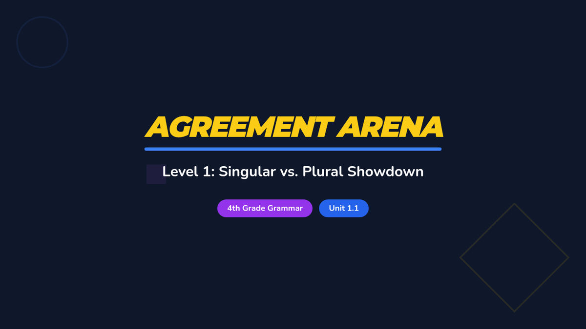 A game-based 4th-grade grammar unit where students master pronoun-antecedent agreement through competitions, 'grammar math,' and interactive challenges. Students progress from basic number and gender matching to complex compound subjects and indefinite pronouns.