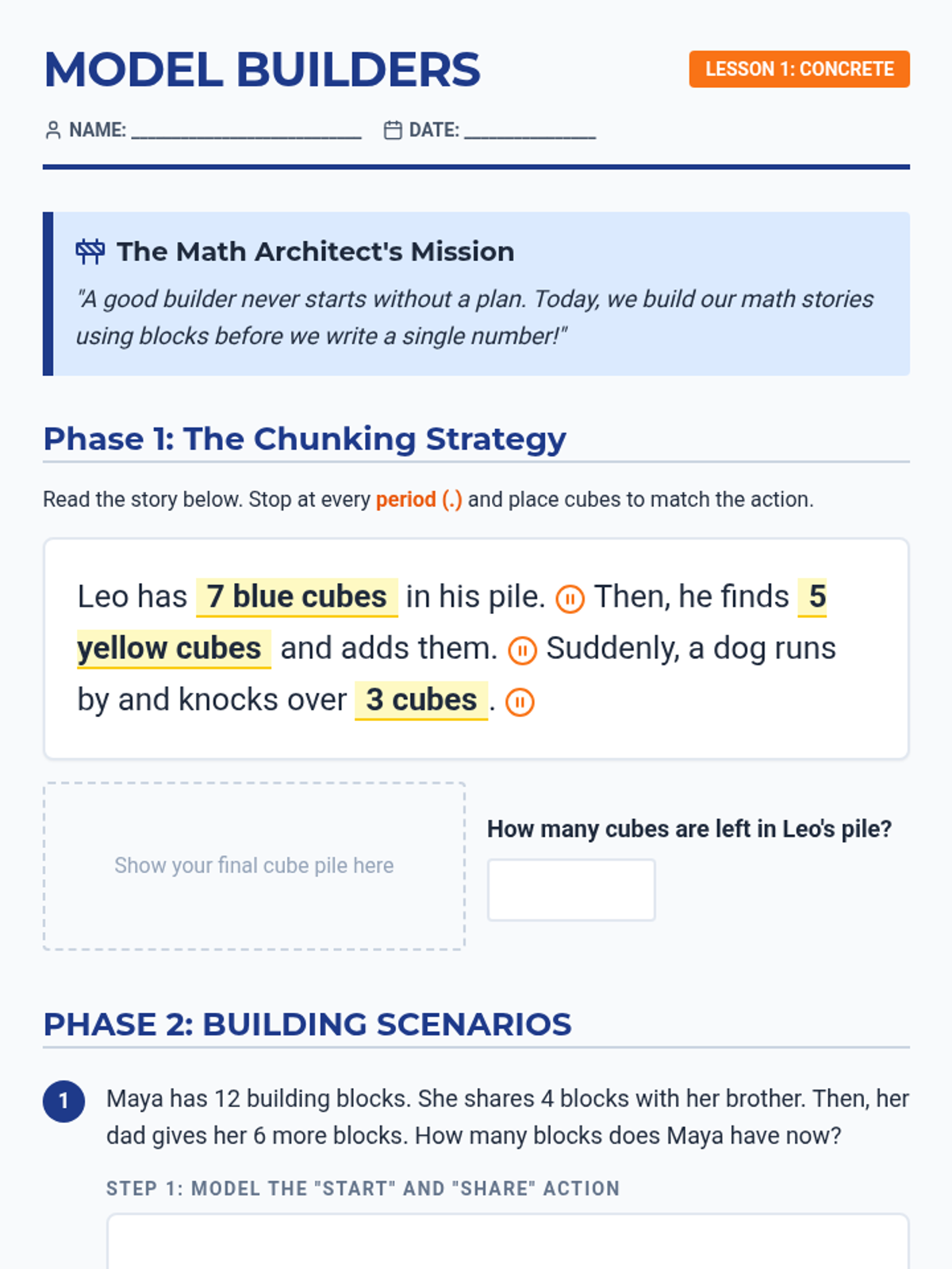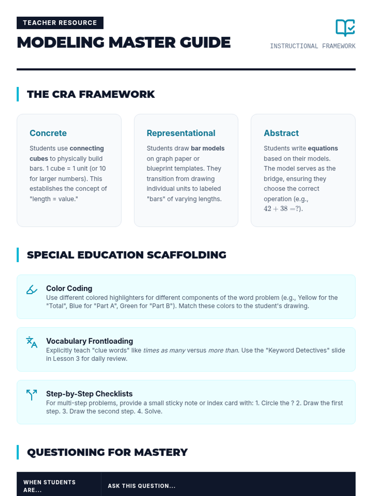 This sequence uses the Concrete-Representational-Abstract (CRA) framework to help 4th-grade students decompose multi-step math problems. Students progress from physical manipulatives to bar models, mastering multiplicative comparisons and two-step problem structures to reduce cognitive load and improve problem-solving accuracy.