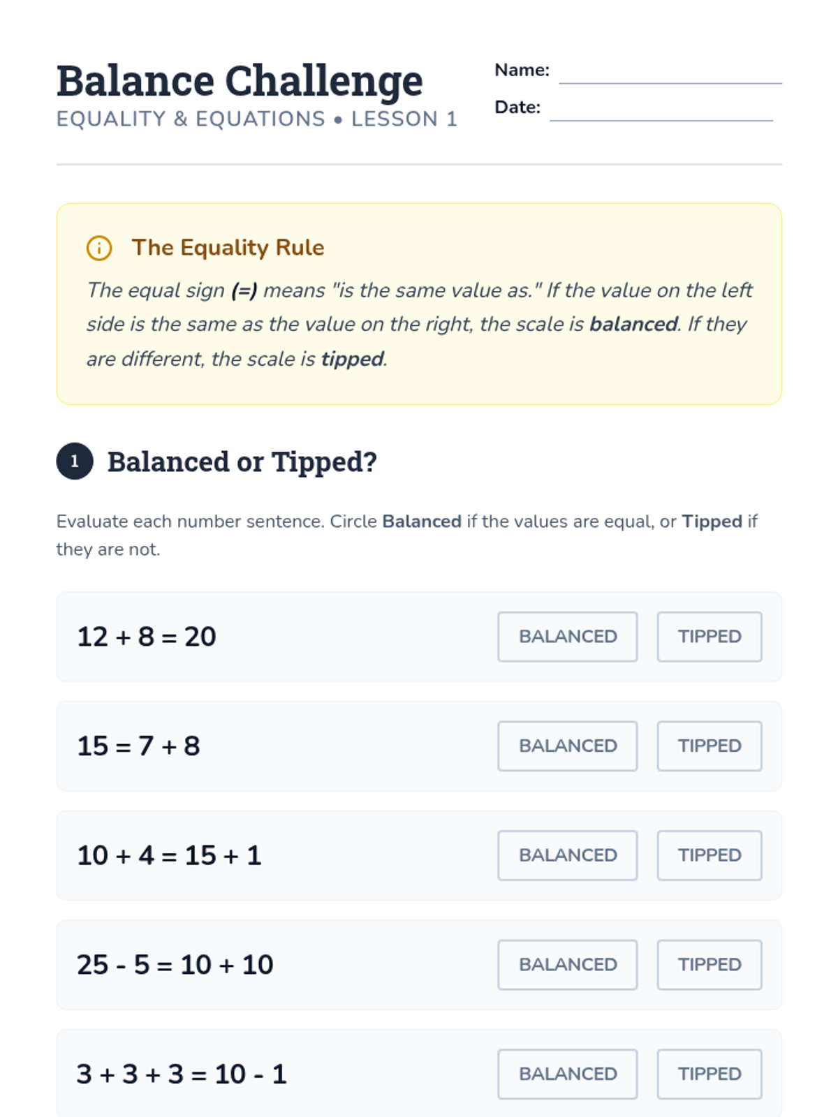 Balance Challenge Worksheet