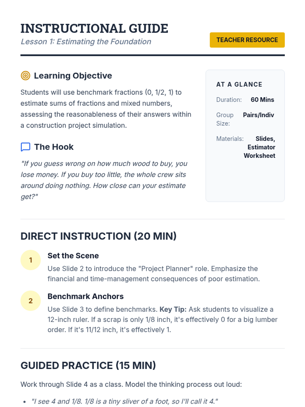 An intensive Tier 2 intervention sequence designed for small groups to master mixed numbers and improper fractions. This series builds conceptual understanding and procedural fluency through visual modeling and structured architectural-themed practice.