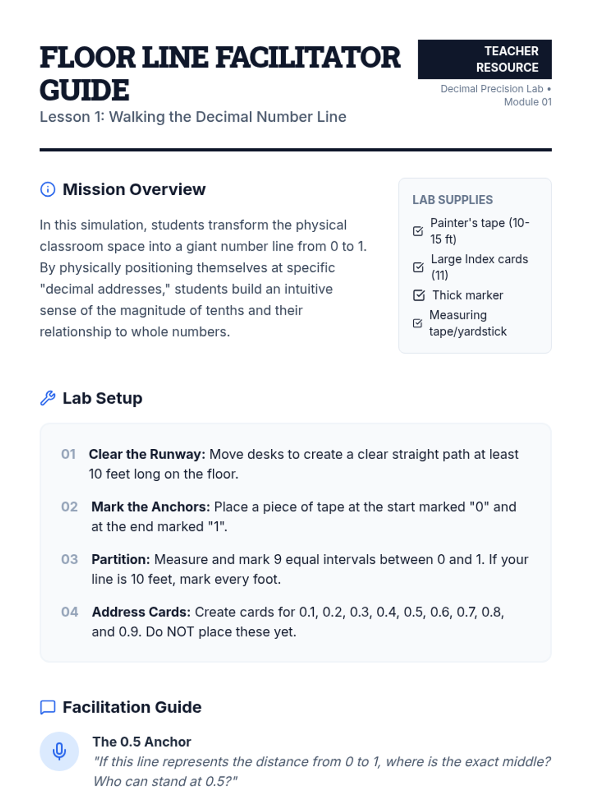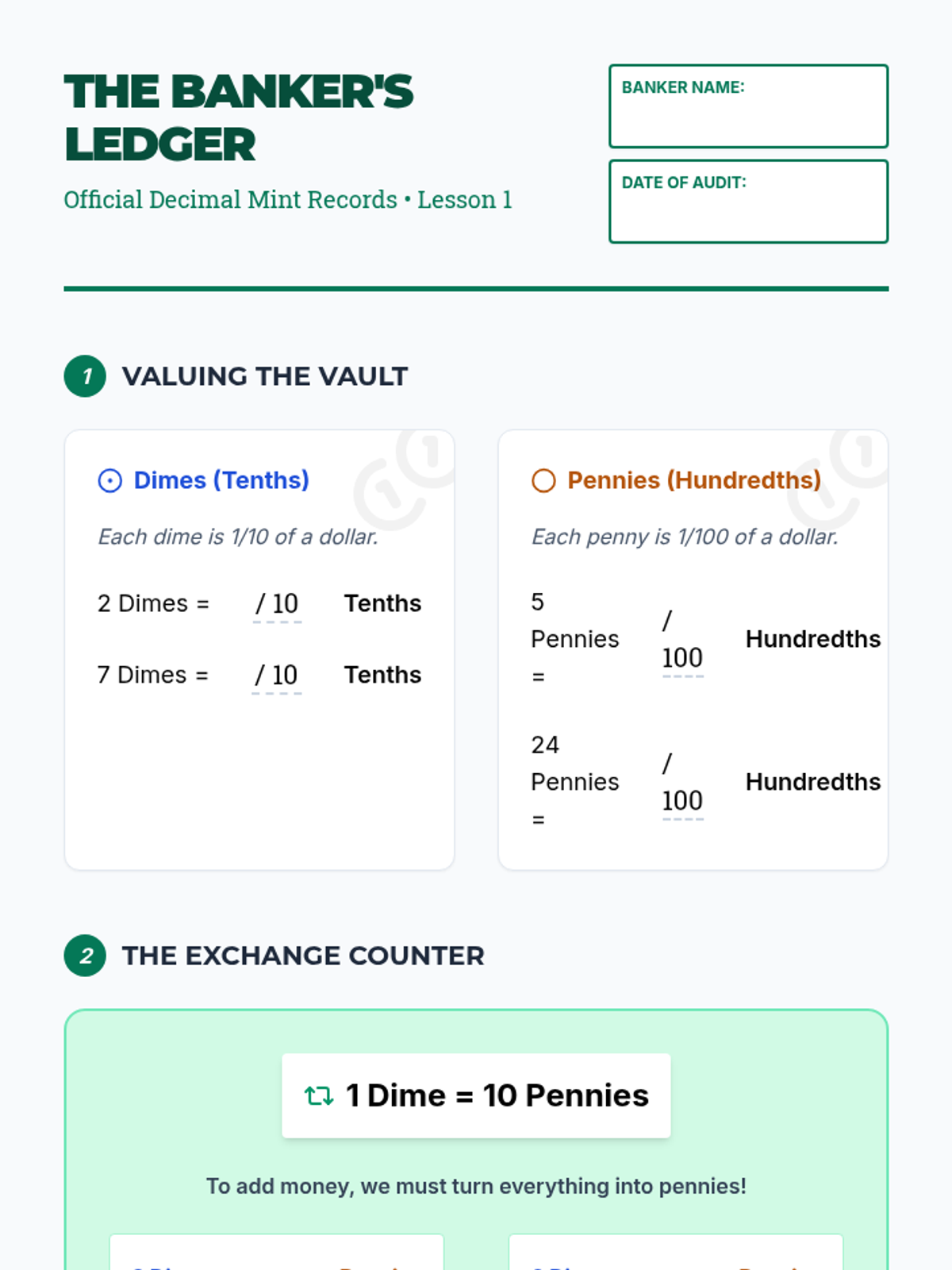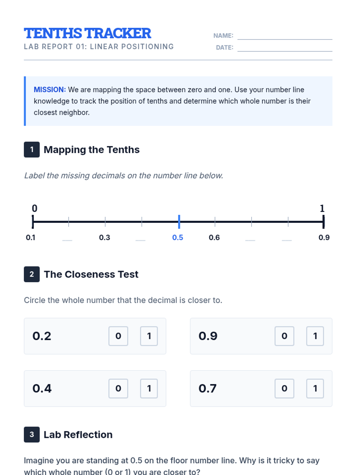 A 5-lesson sequence applying decimal fractions to measurement, money, and data analysis. Students act as scientists and analysts to master tenths and hundredths through hands-on simulations and real-world budgeting.