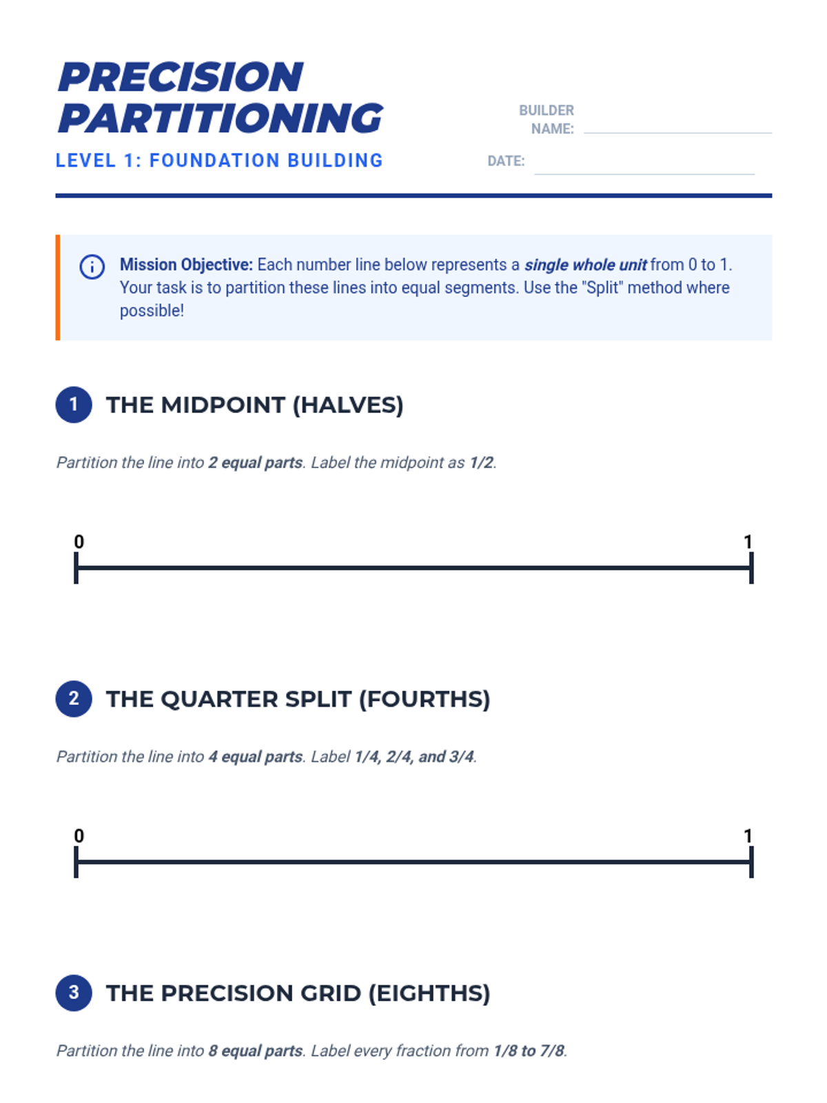 A series of targeted interventions focusing on foundational fraction concepts, specifically partitioning and representing fractions on number lines.
