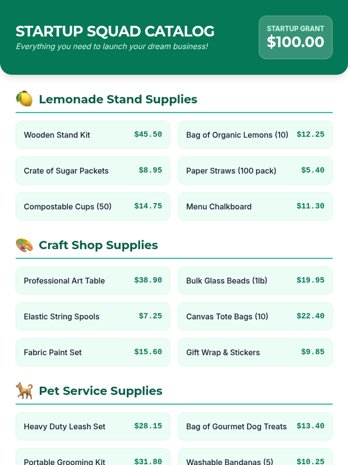An integrated math and financial literacy unit where 4th graders launch a small business. Students master multi-digit computation with money (decimals) while learning budgeting, profit calculation, and fair sharing.