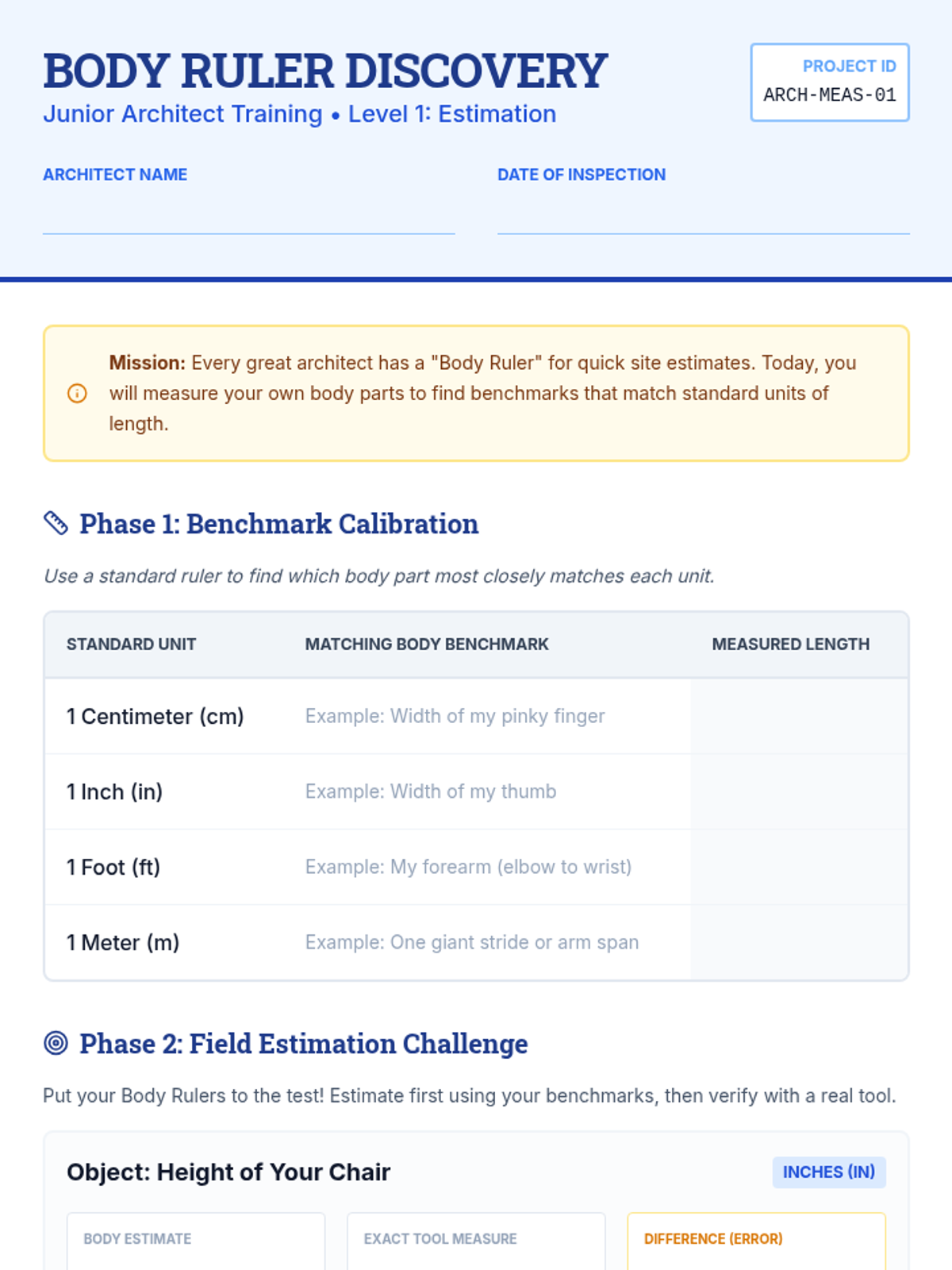 Students become junior architects, mastering estimation and precise measurement using metric and customary units to design classroom floor plans.