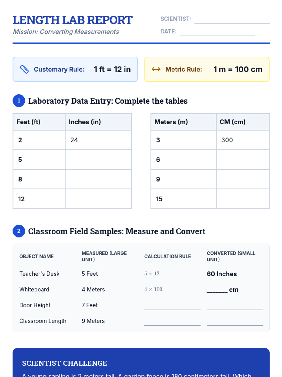 A 4th-grade chemistry and engineering sequence focusing on the analysis and manipulation of measurement data. Students explore metric and customary conversions, benchmark comparisons, and data accuracy through a project-based blueprint scaling challenge.