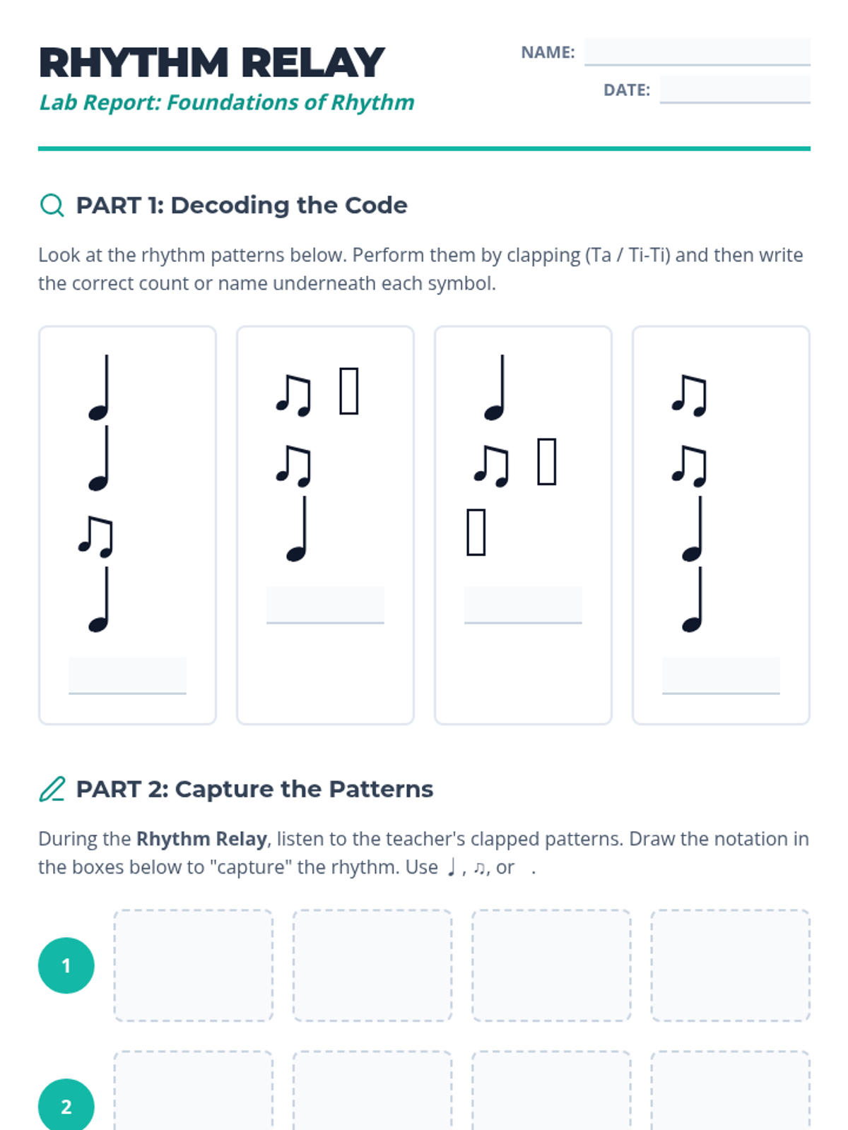 This sequence guides 5th-grade students through the intricacies of advanced rhythmic notation, moving from sixteenth note subdivisions and dotted rhythms to the complexities of syncopation and compound meter. Through a blend of auditory analysis, physical performance, and formal notation, students develop the skills to decode and compose sophisticated musical patterns.