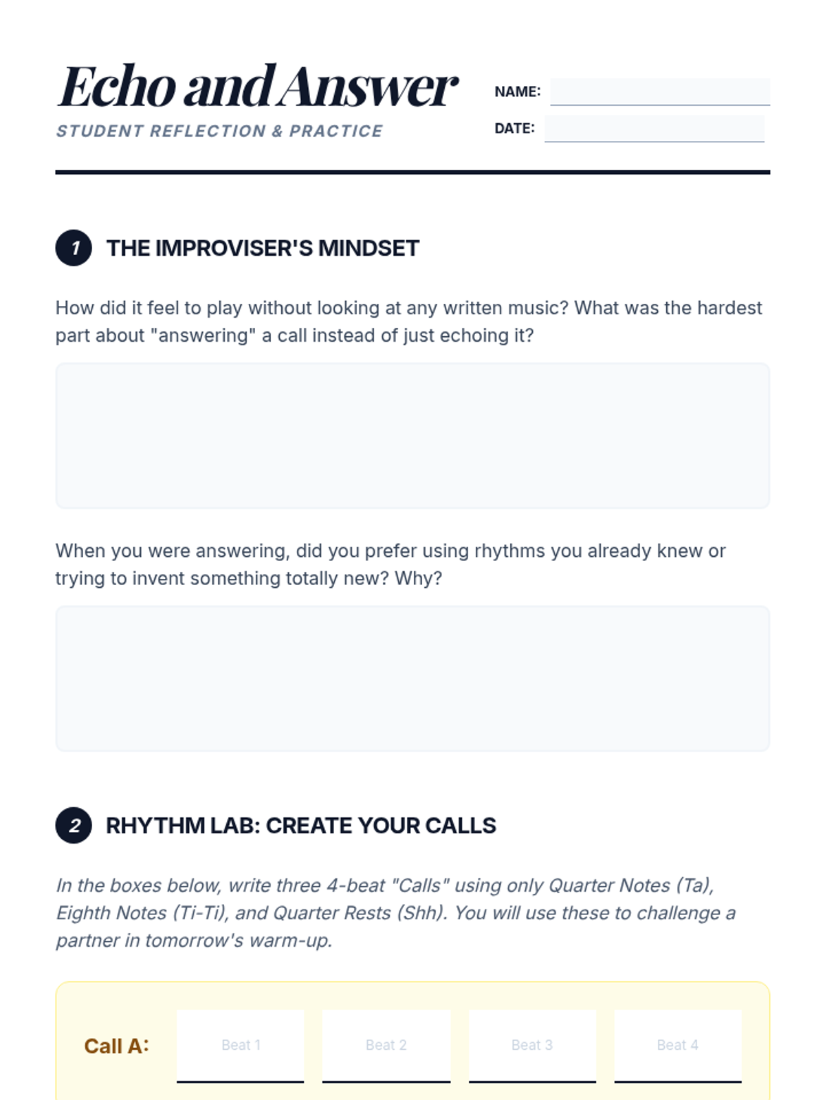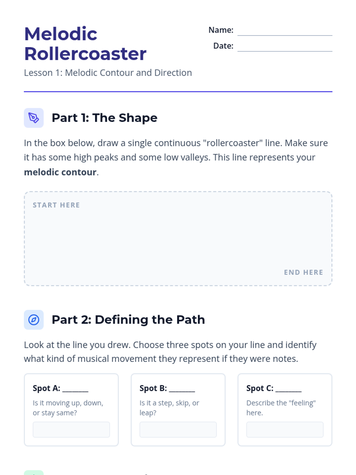 A 5th-grade music sequence where students transition from improvisation to full melodic composition. They explore motifs, notation, and phrasing, culminating in a class recital of original works.