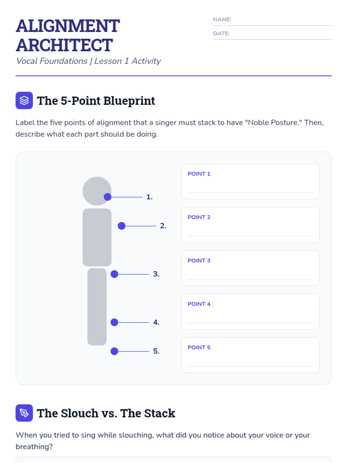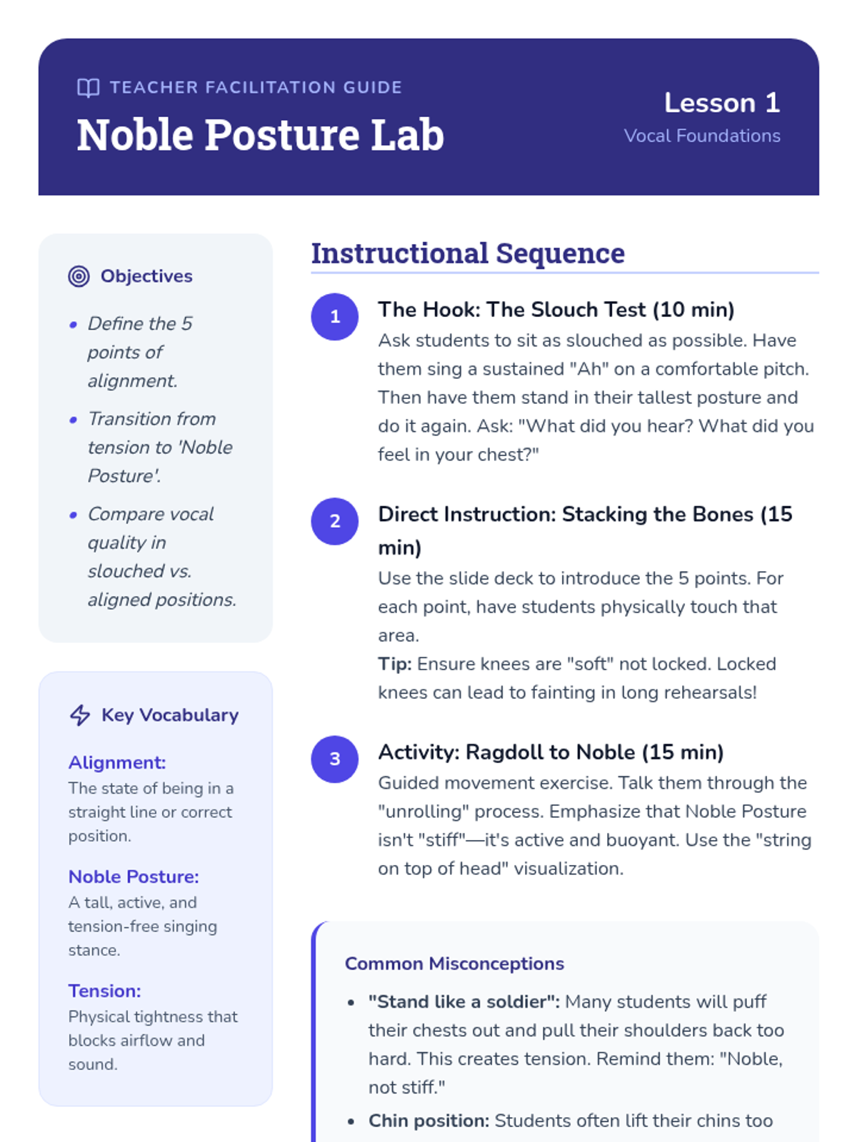 A 5th-grade music sequence focused on the physical foundations of singing, covering posture, diaphragmatic breathing, breath management, resonance, and vocal health. Students will treat their bodies as musical instruments to develop healthy, sustainable vocal habits.