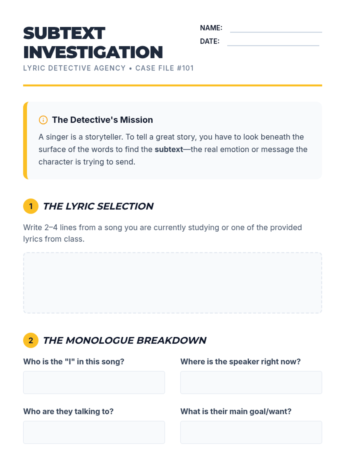 A 5-lesson unit for 6th-grade singers focusing on the intersection of technical performance and artistic storytelling. Students explore lyrics as poetry, master the mechanics of phrasing and breath management, manipulate dynamics and tempo for emotional impact, and analyze interpretive choices in cover songs.