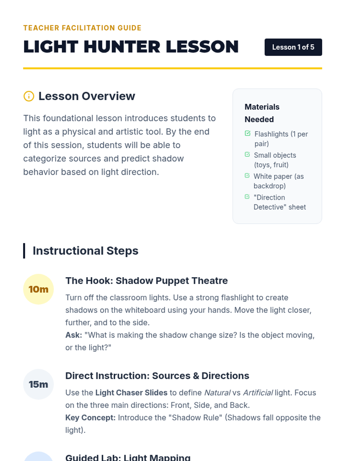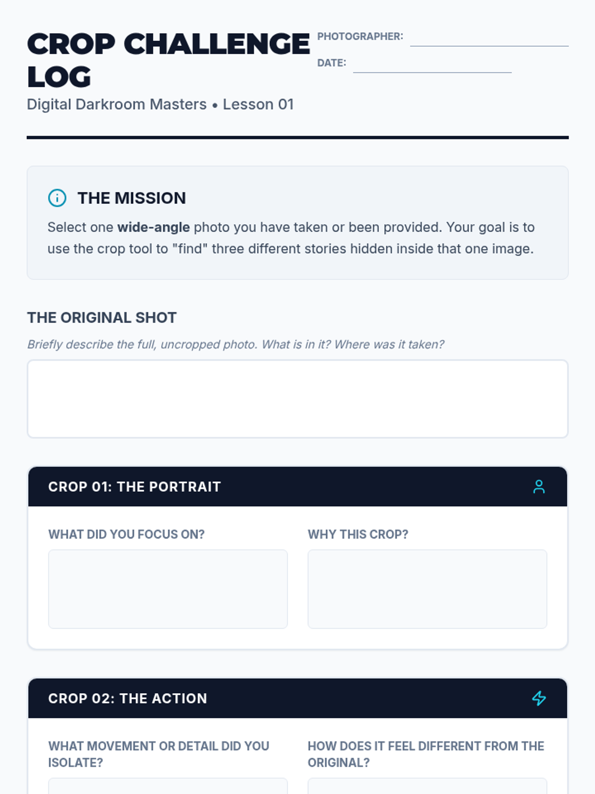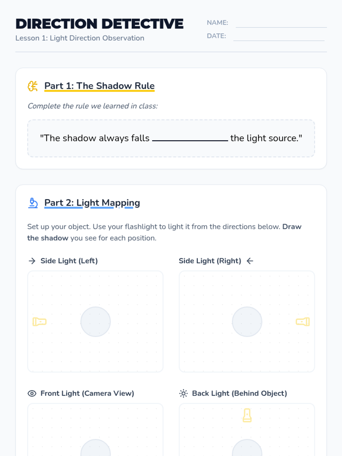 In this sequence, students explore light as the primary medium of photography, investigating how direction, quality, and source affect the mood of an image. Through hands-on experiments, learners discover the difference between hard and soft light and learn to manipulate shadows for artistic effect.