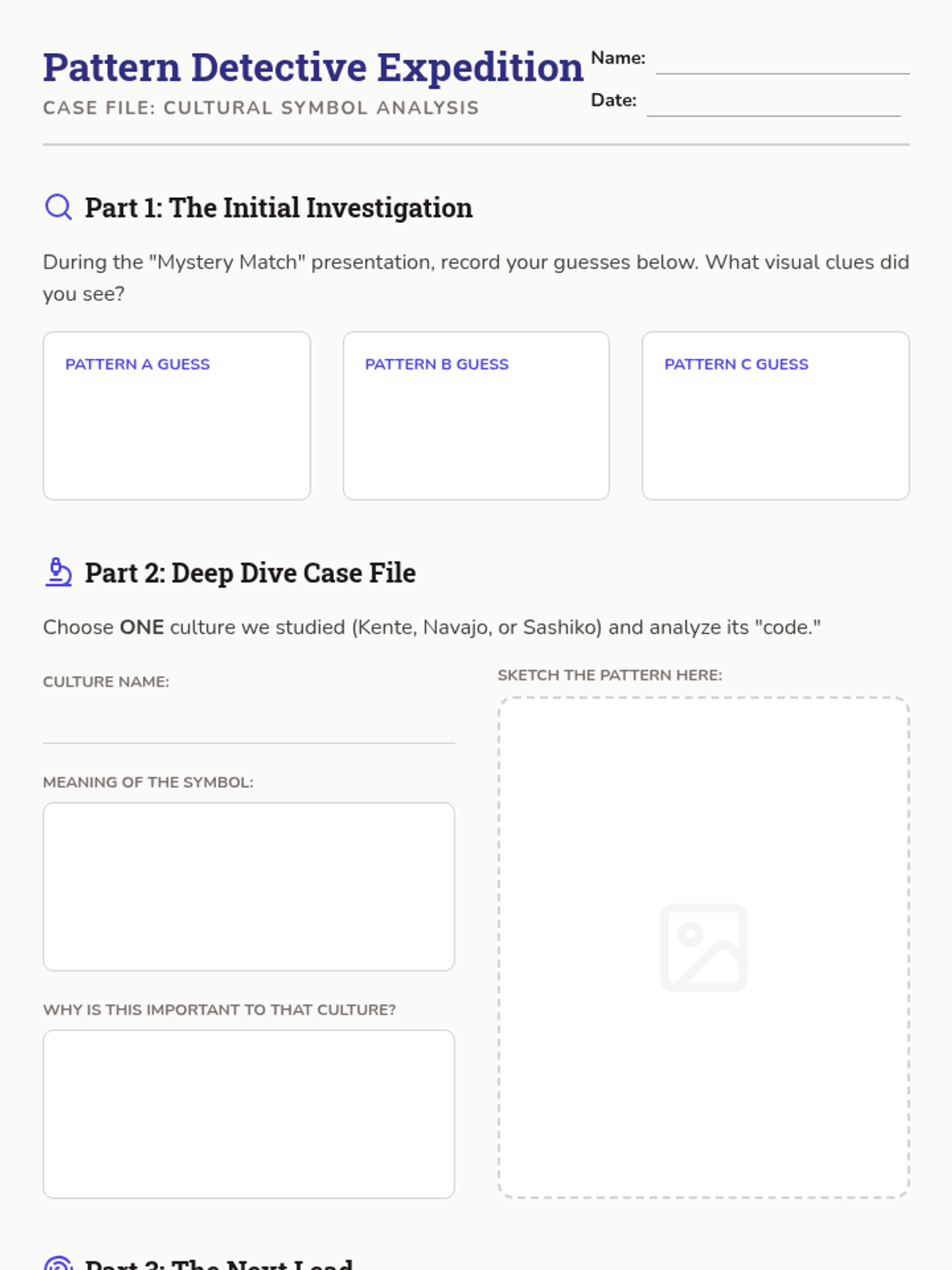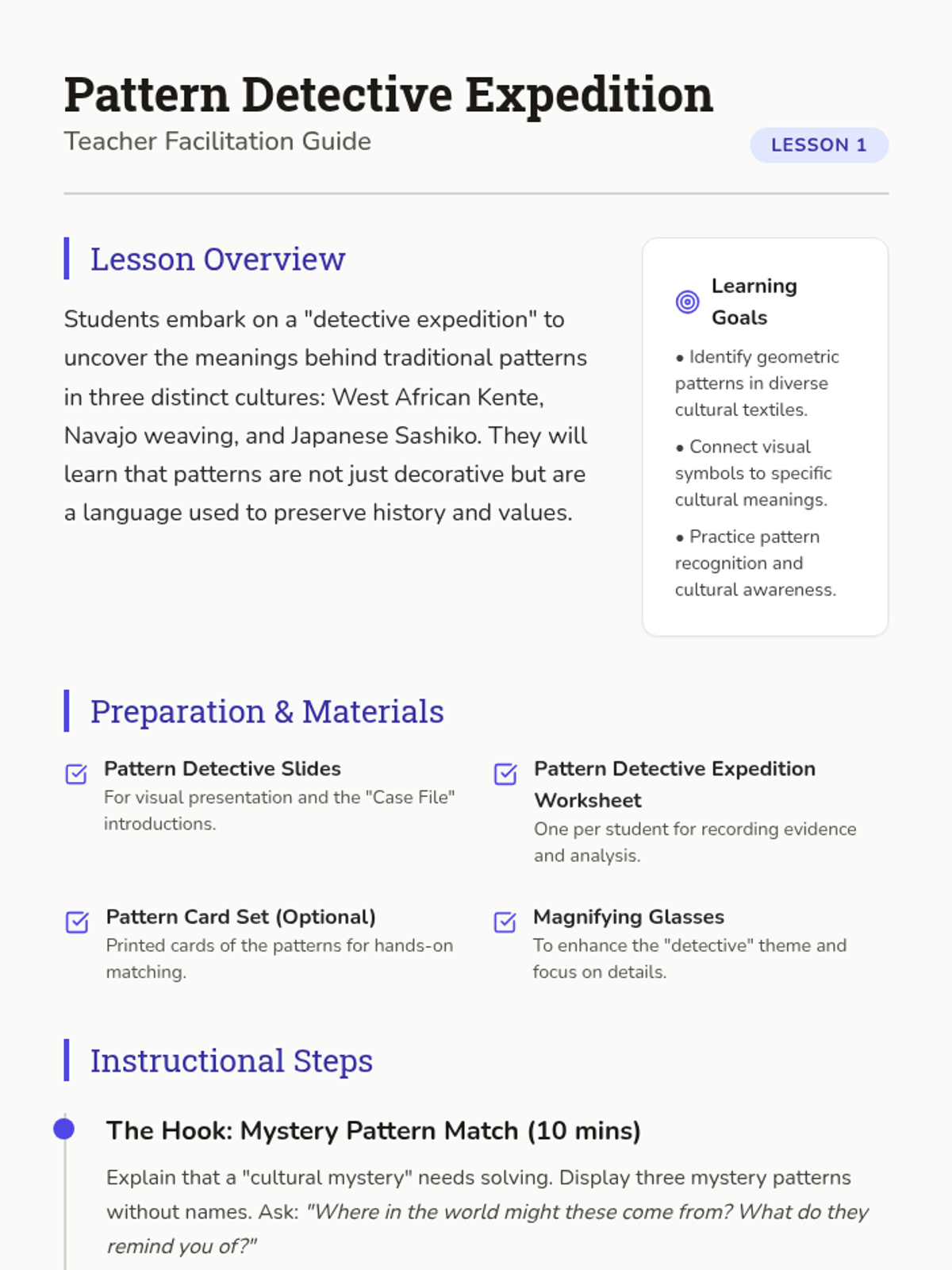 This 5-lesson sequence explores how art preserves cultural heritage. Students analyze patterns from West African, Navajo, and Japanese traditions, identify personal cultural symbols, and create a collaborative class mosaic that celebrates their diverse backgrounds and shared community.