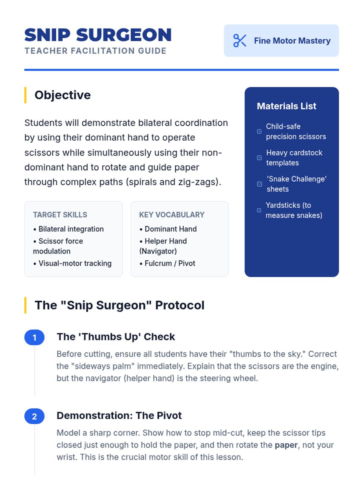 Students develop advanced fine motor skills and bilateral coordination through 3D paper engineering. The sequence progresses from intricate scissor work and precise folding to tool-based measuring and complex adhesive control, culminating in the construction of functional pop-up mechanisms.