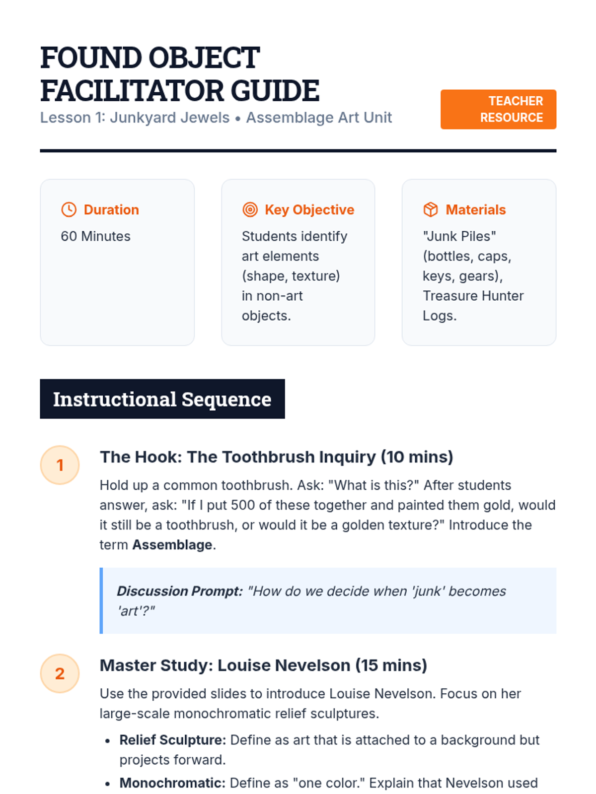 Students explore the world of assemblage art by repurposing found objects into unified relief sculptures. They learn about composition, texture, and unity through hands-on construction and monochromatic finishes.