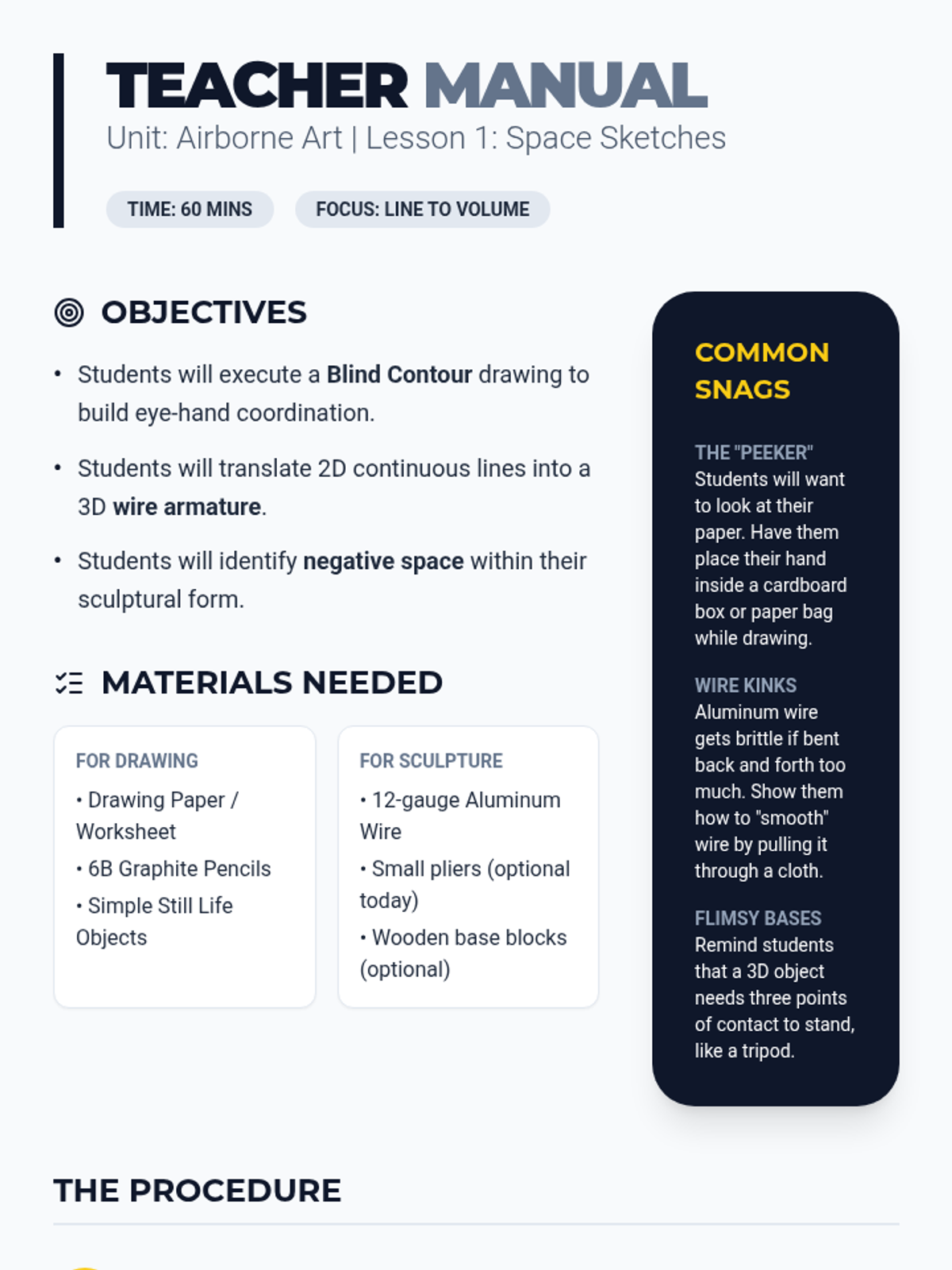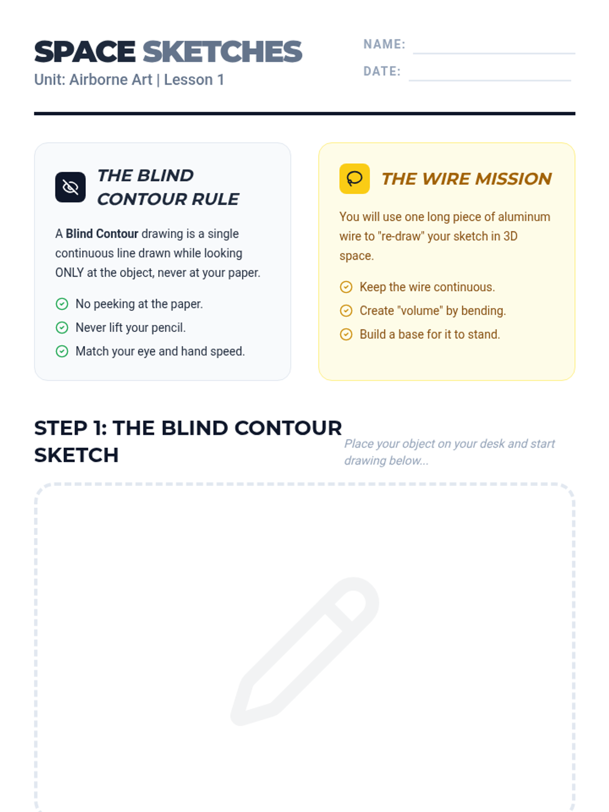 A 5th-grade art unit exploring kinetic wire sculpture and mobiles. Students transition from 2D contour drawings to 3D wire constructions, focusing on balance, movement, and negative space inspired by Alexander Calder.