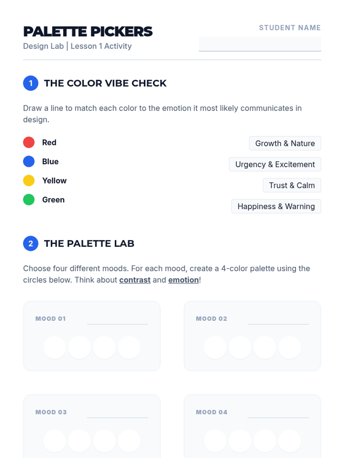 A 5-lesson sequence for 5th-grade students exploring the fundamentals of graphic design through typography, color theory, contrast, and visual hierarchy. Students learn to communicate emotions and messages effectively before creating a final expressive typographic poster.
