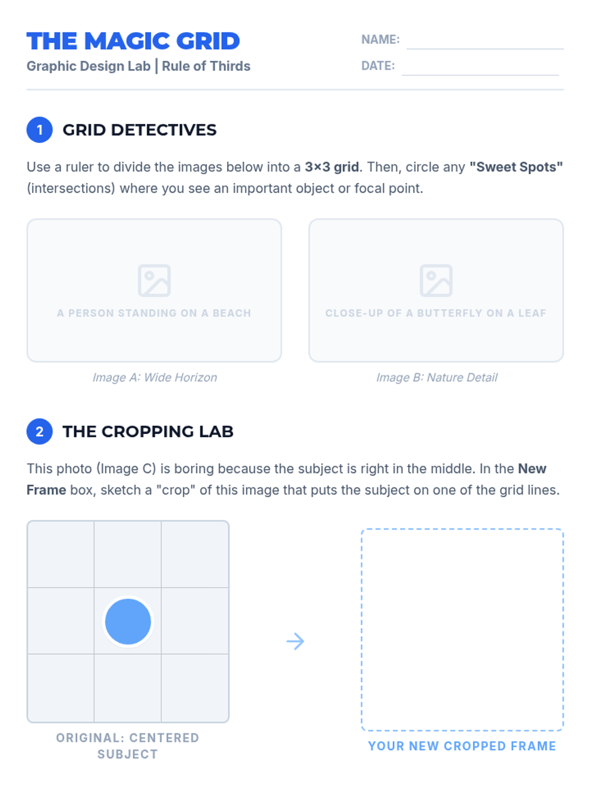 A comprehensive graphic design unit for 5th graders focusing on the principles of visual composition. Students explore the Rule of Thirds, balance white space, establish visual flow, and design for specific audiences to create professional-quality layouts.