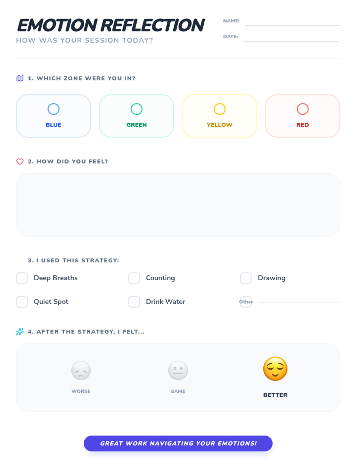 A 5-session small-group intervention for 5th graders to identify behavioral triggers, develop coping routines, and track progress toward self-regulation goals.