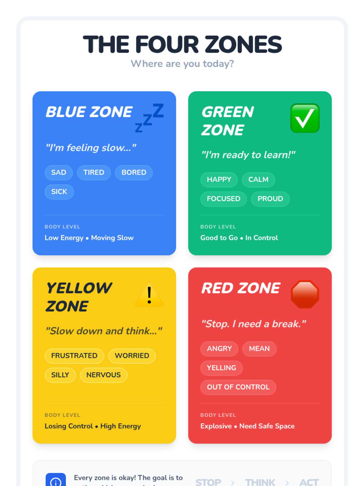 This sequence provides a tiered approach to understanding emotional triggers and 'sparks' within the Zones of Regulation framework. It begins with a general classroom introduction to the concepts and transitions into an intensive, small-group 'detective' investigation for students needing Tier 3 support.