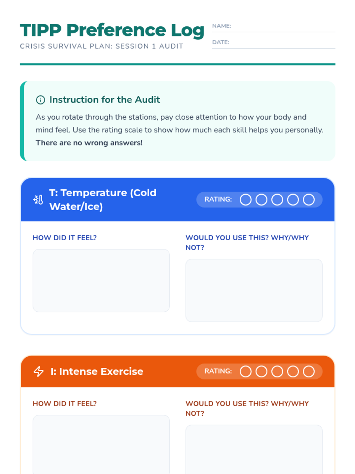 A comprehensive 5th-grade unit introducing the TIPP protocol for crisis survival. Students learn to distinguish between general stress and emotional crises, building a practical toolkit of physiological regulation strategies including temperature change, intense exercise, paced breathing, and paired muscle relaxation.
