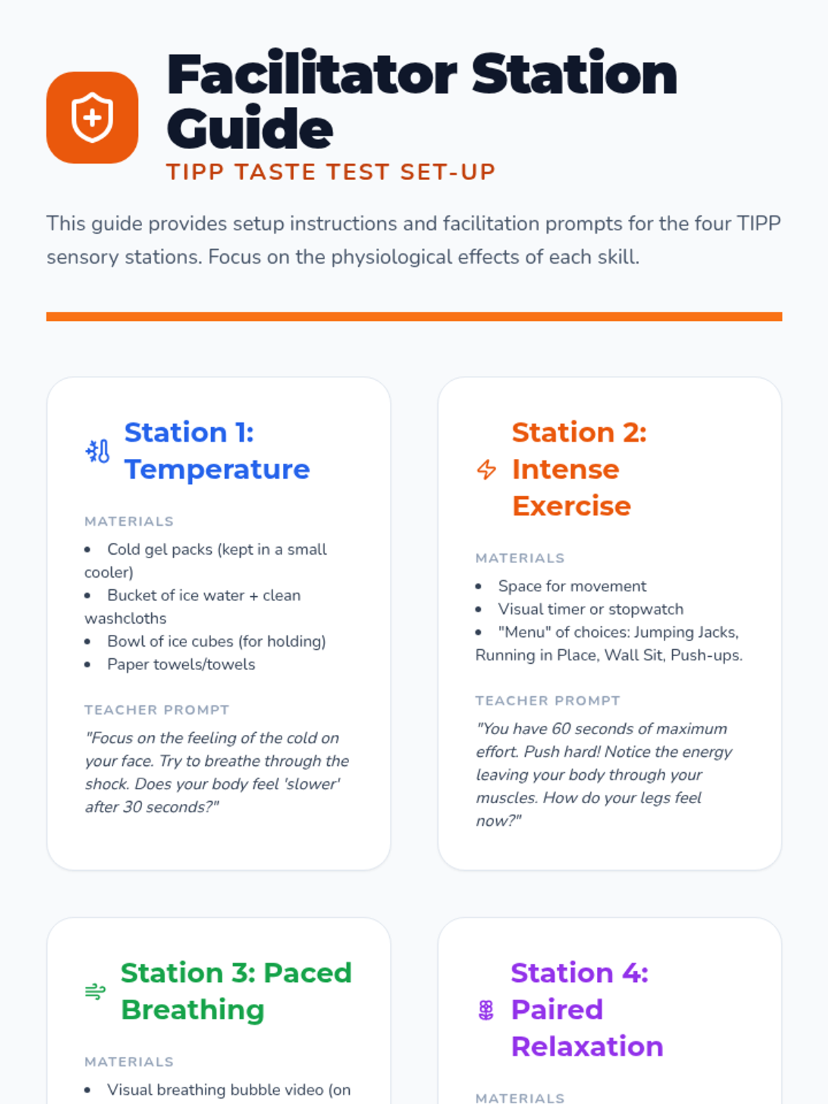 A high-energy, game-based sequence designed to teach 5th-grade students TIPP crisis survival skills through active movement and physical practice to build muscle memory for emotional regulation.