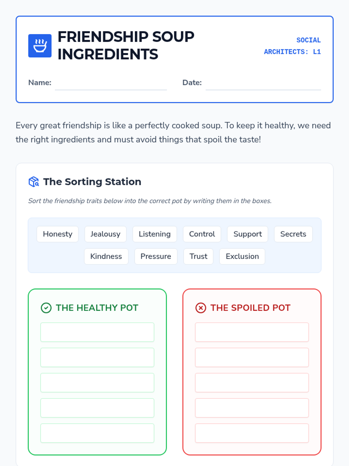 This 5-lesson sequence for 5th Grade students explores the essential components of healthy relationships, focusing on personal boundaries, consent, peer pressure resistance, and safety planning. Students use an architectural metaphor to 'build' healthy social connections and 'map' their personal comfort zones.