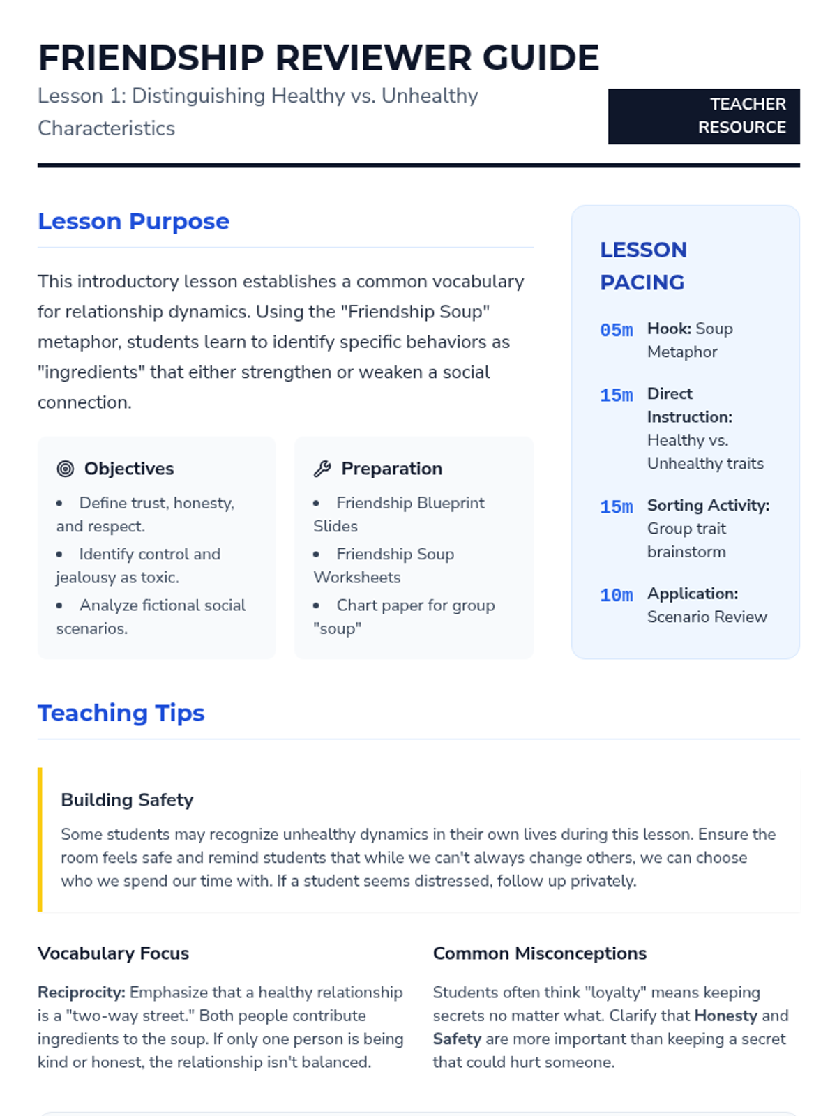 A comprehensive three-session sequence for 5th graders focused on identifying bullying, learning safe intervention strategies, and knowing when to seek adult help. Designed with Tier 1 supports and inclusive language for diverse learners.