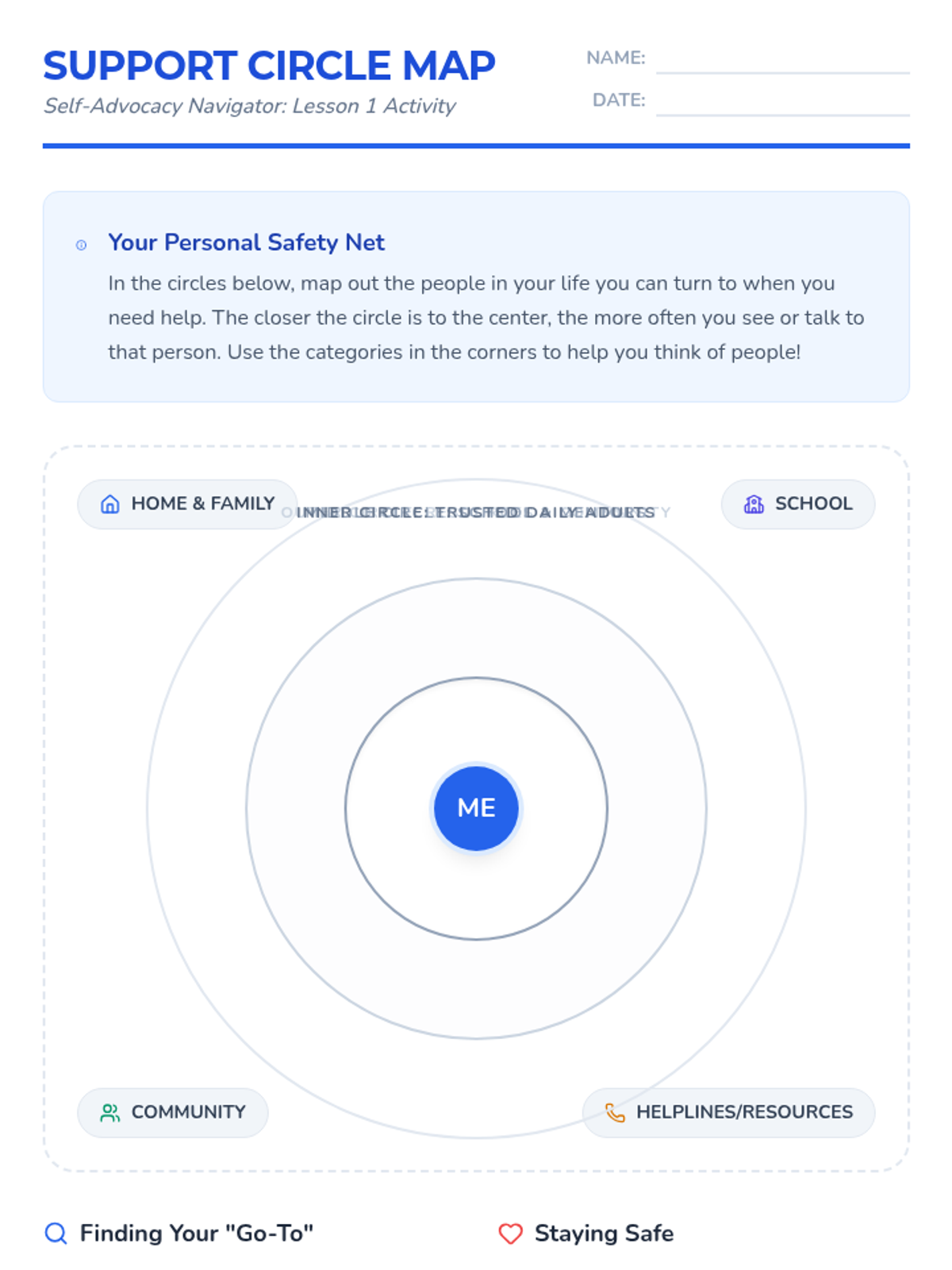 A comprehensive 5th-grade sequence focused on developing self-advocacy skills. Students learn to identify trusted adults, distinguish problem severity, practice assertive communication, set personal boundaries, and navigate community resources.