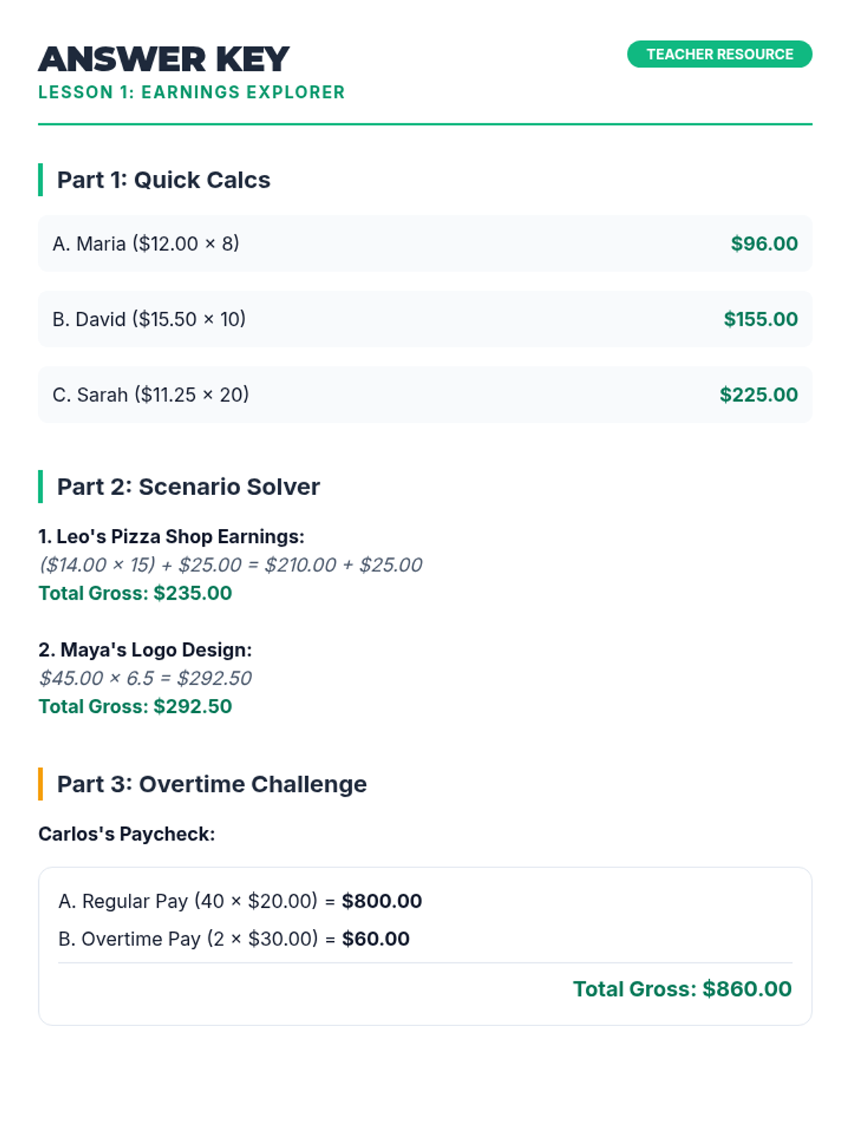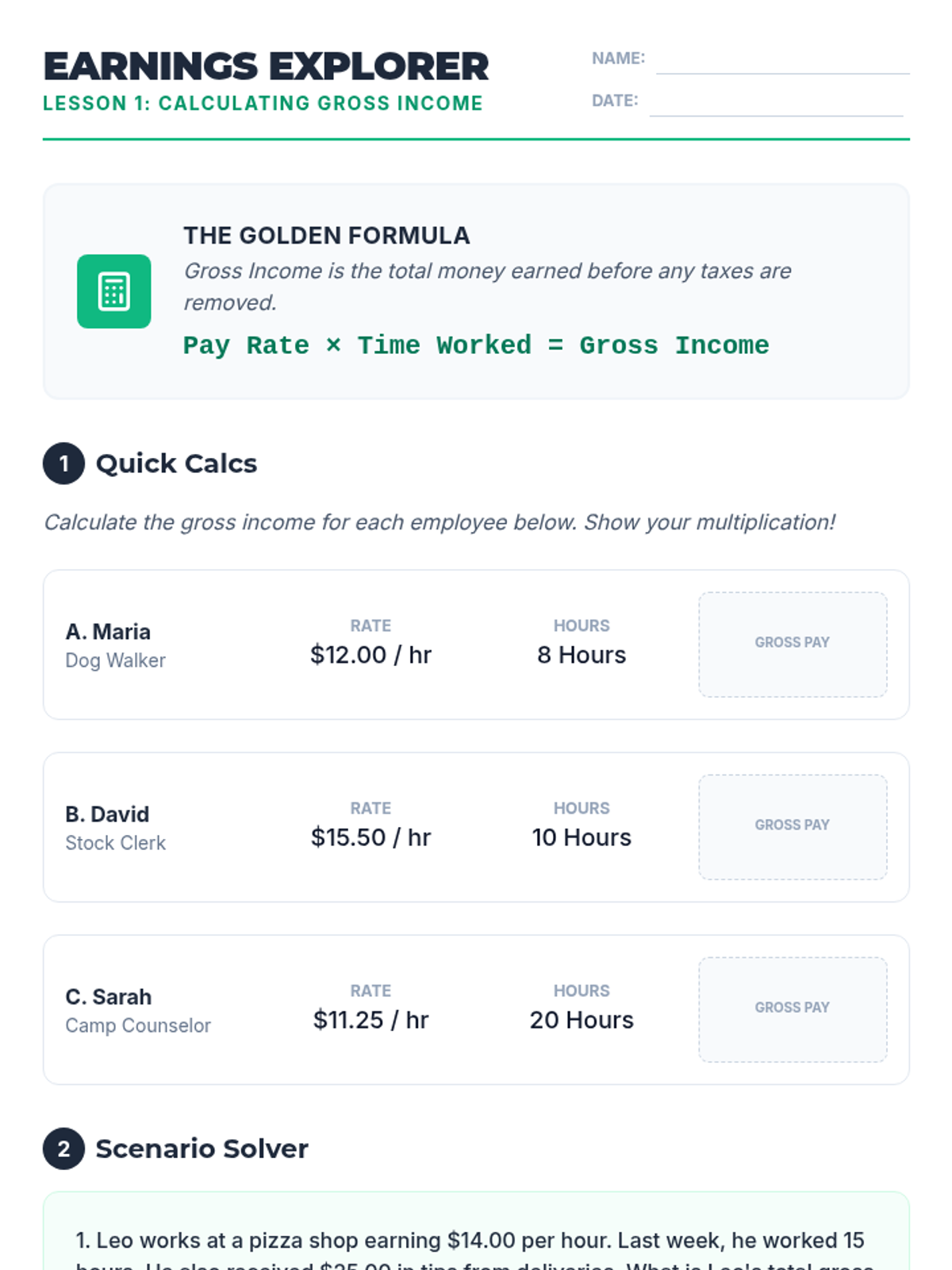 A comprehensive unit for 5th graders on the mathematics and mechanics of paychecks. Students explore gross income, deductions for public goods, and the final net pay used for budgeting.