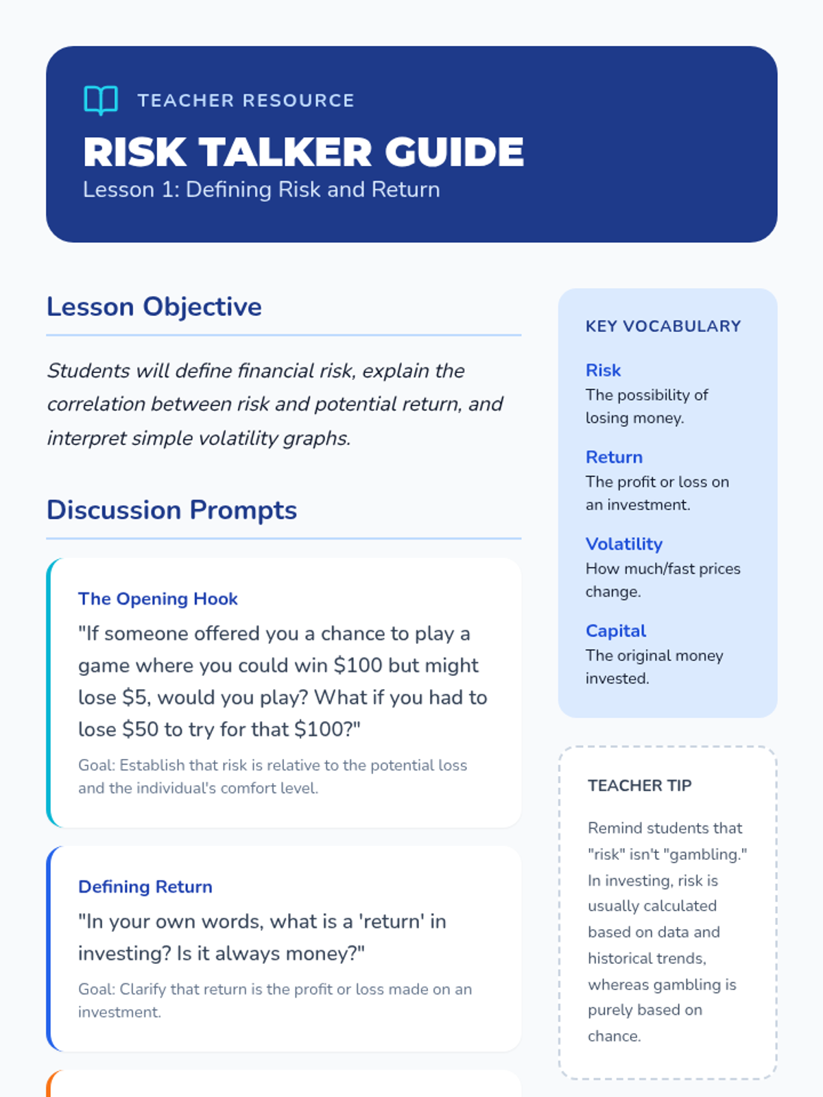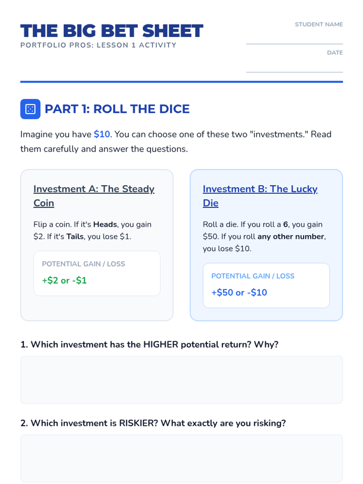 A comprehensive unit on financial literacy focusing on the relationship between risk, return, and the power of diversification for 5th-grade students.