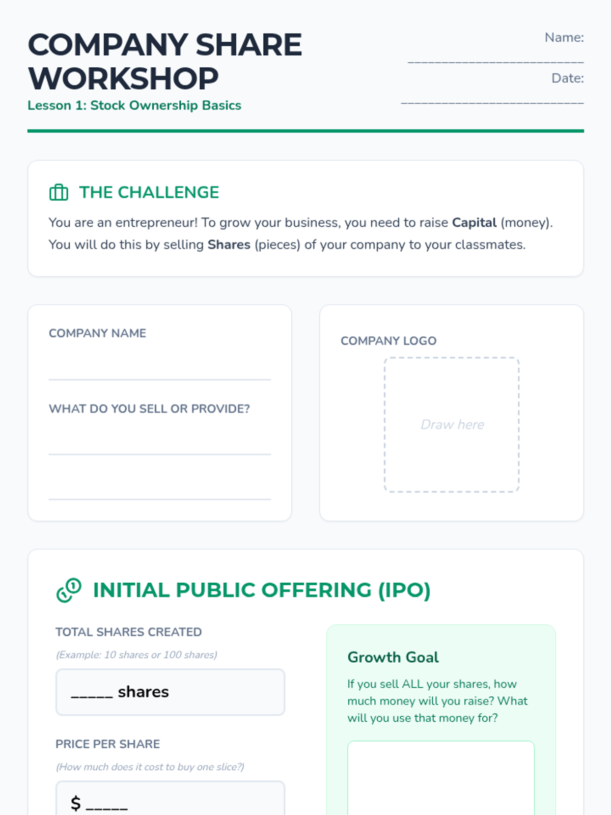 Students explore the world of investing by distinguishing between stocks (ownership), bonds (loans), and mutual funds (pooling). Through simulations, market games, and analogies, 5th graders learn how capital is raised and how markets fluctuate based on real-world events.
