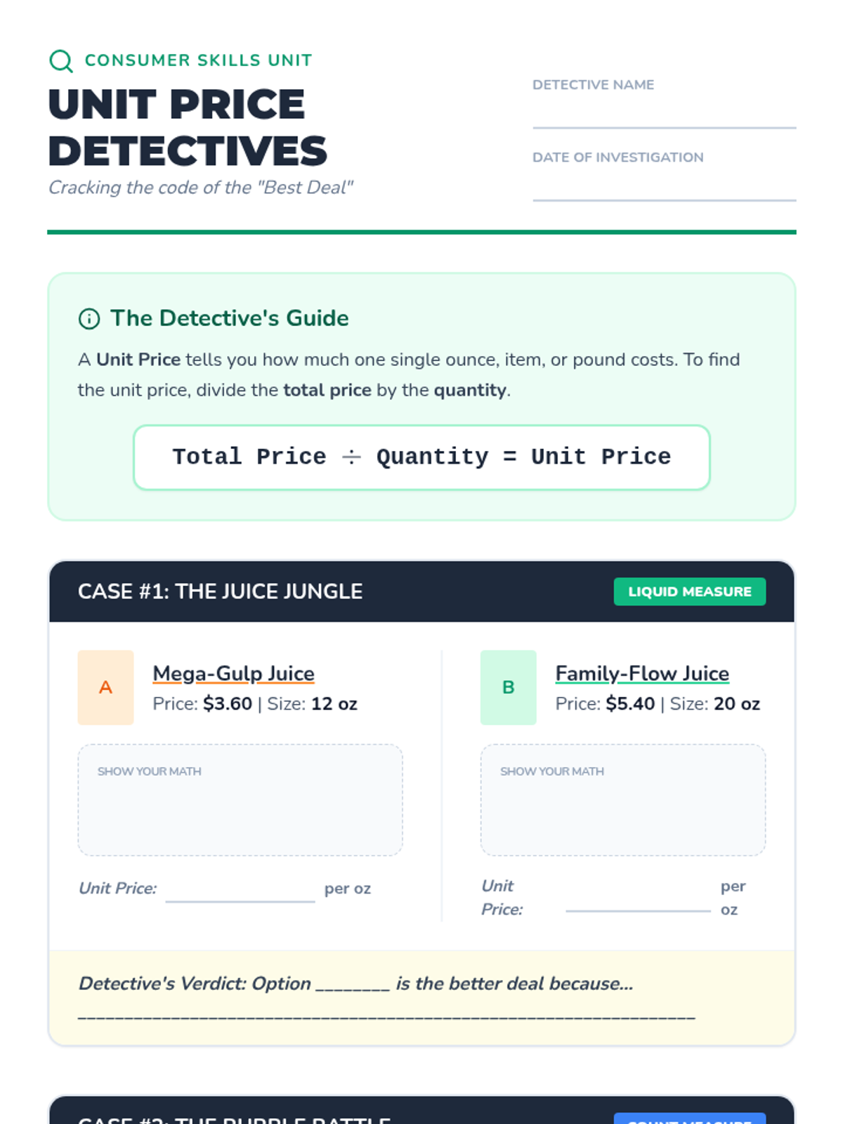A comprehensive financial literacy sequence that teaches 5th graders to master comparison shopping. Students learn to calculate unit prices, evaluate brand vs. generic value, navigate discounts, and account for hidden costs to make smart consumer choices.