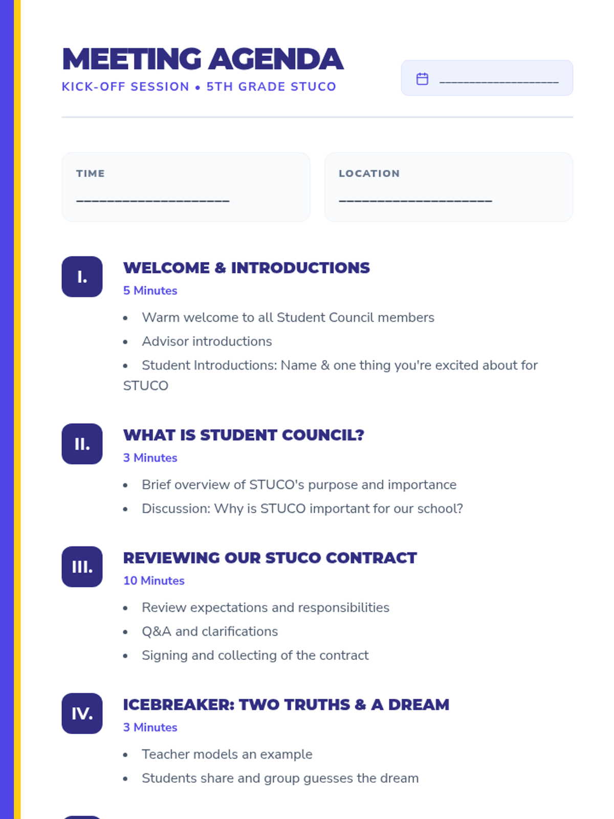A 2-part sequence for 5th-grade Student Council members to establish their roles, set expectations, and begin brainstorming impactful school improvement projects through collaborative debate and creative thinking.