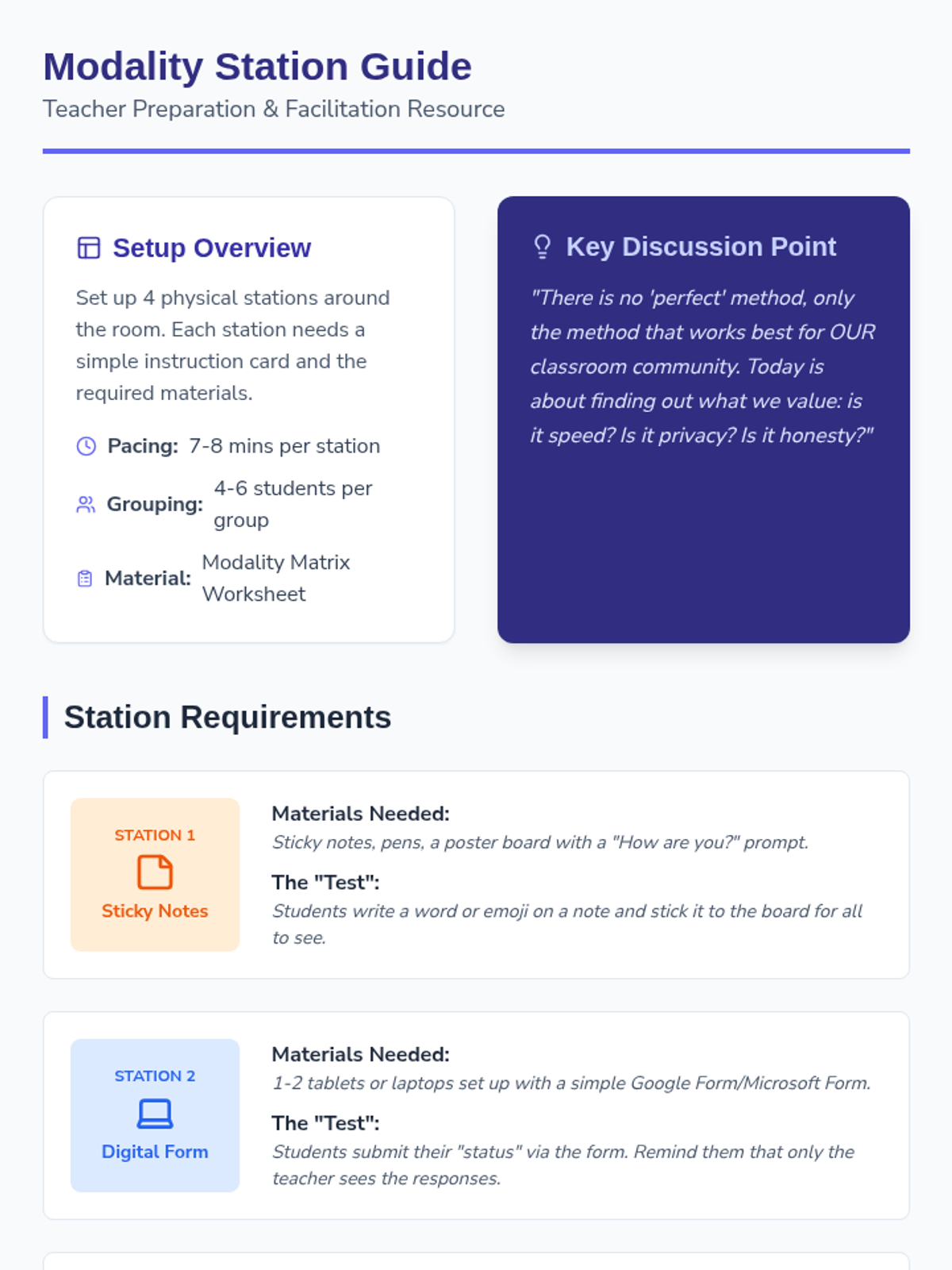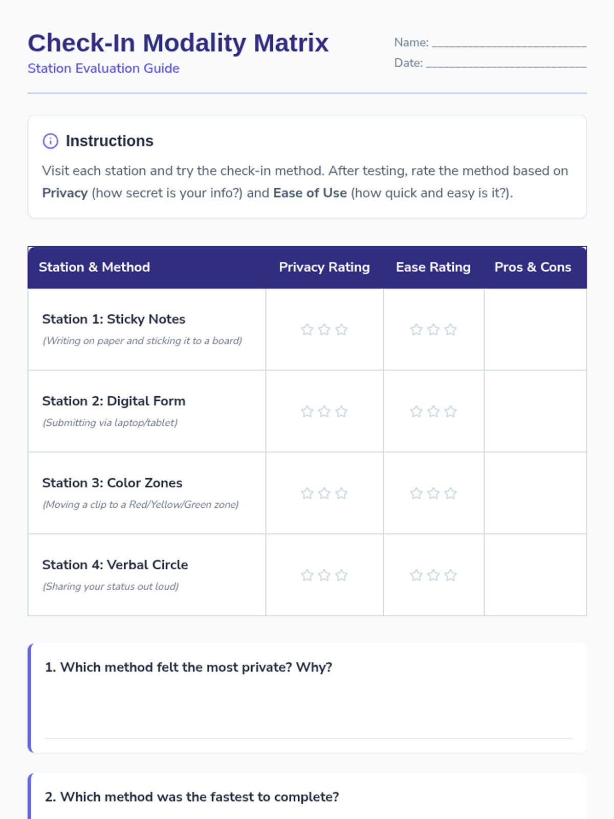 A project-based unit where 5th-grade students analyze, design, and implement a daily classroom check-in system. Students explore different modalities, evaluate privacy needs, and collaborate to create a supportive routine that fosters emotional awareness and psychological safety.