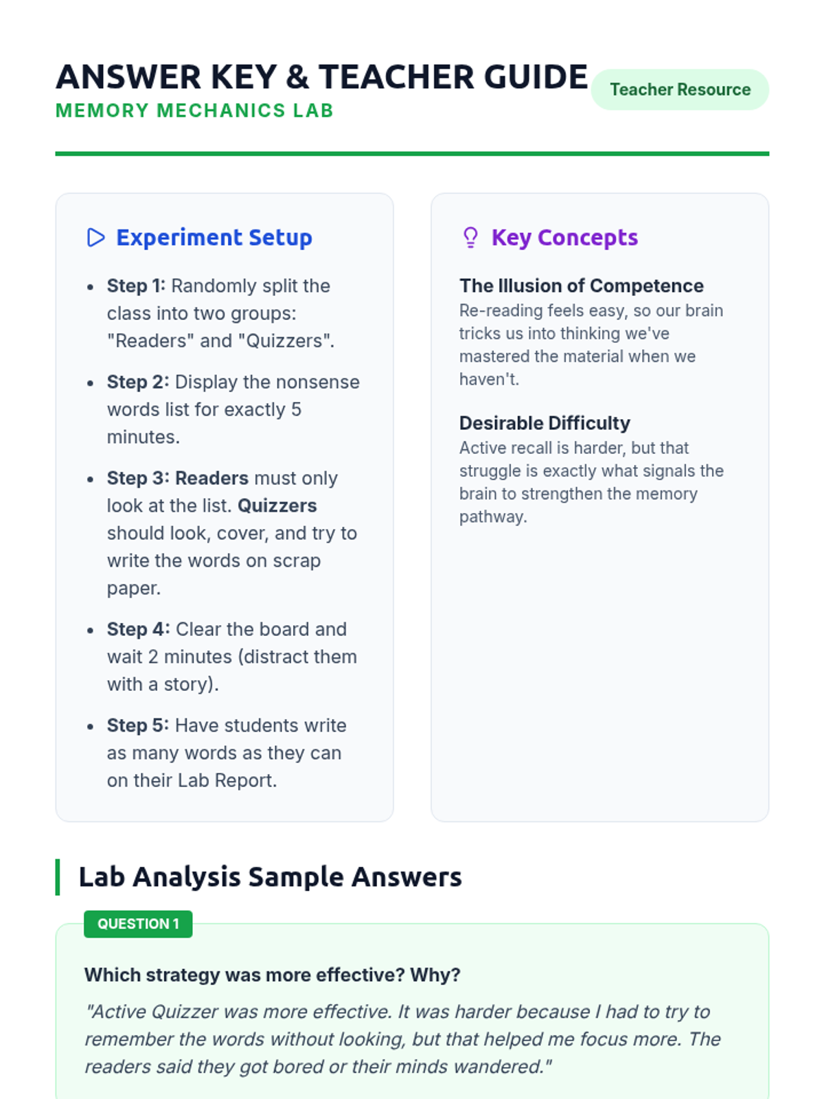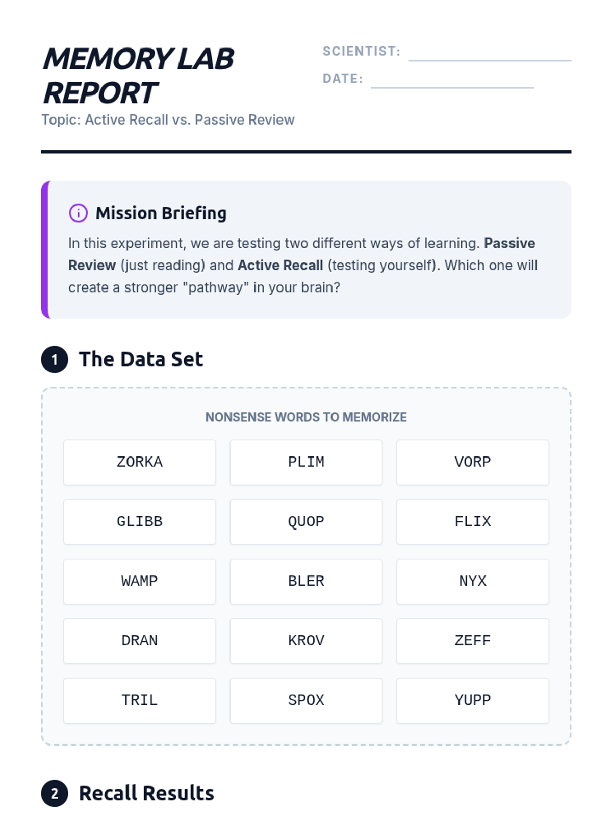 A gamified 5-lesson unit for 5th graders that transforms test preparation into a series of 'power-ups.' Students learn active recall, flashcard engineering, mnemonic devices, collaborative review, and anxiety management techniques to boost their academic performance and confidence.