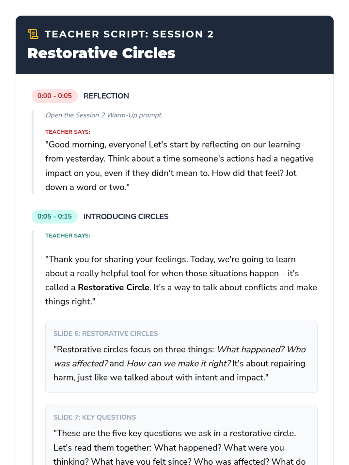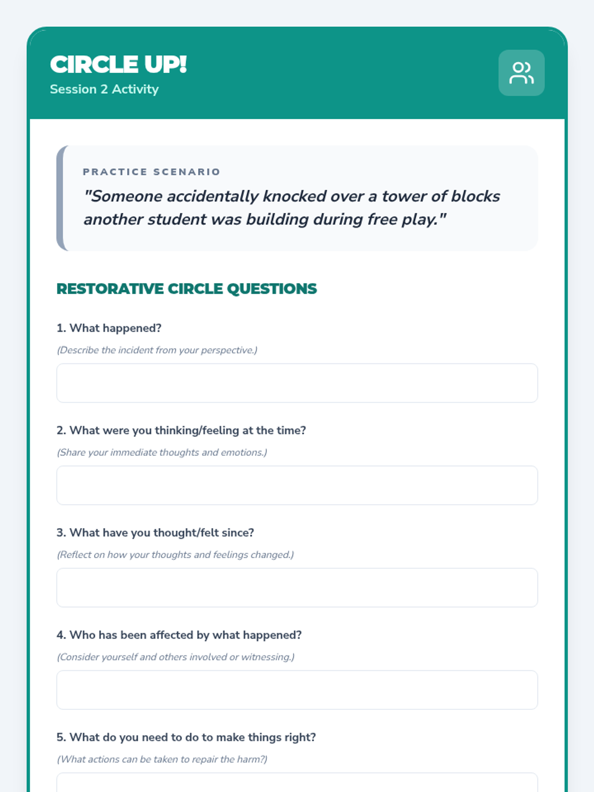 A 5-lesson sequence for 5th-grade students focused on post-dysregulation recovery. This series helps students move from shame to logic by externalizing behaviors, analyzing event timelines, practicing restorative apologies, and planning for future success.