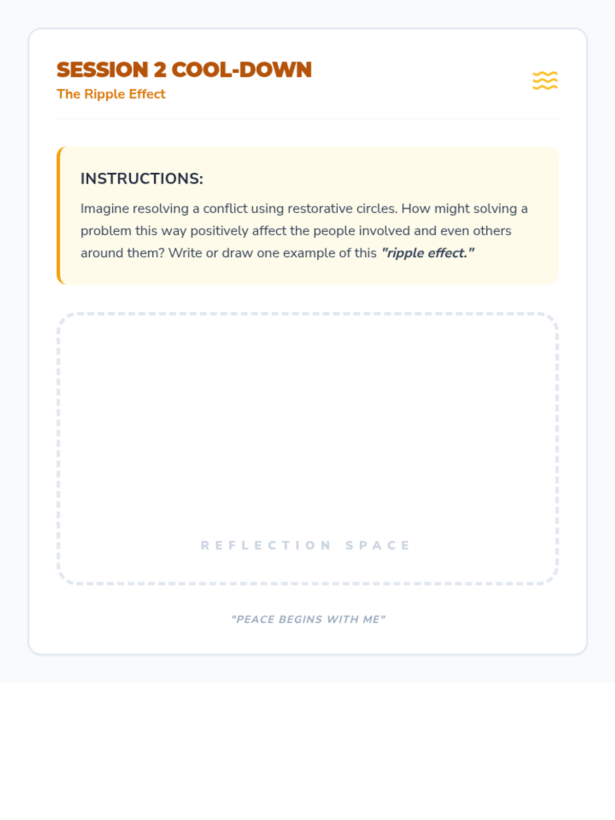 A comprehensive 5-day unit for 5th grade focused on building a culture of mutual respect through the metaphor of water and ripples. Students explore active listening, conflict resolution, and community building.