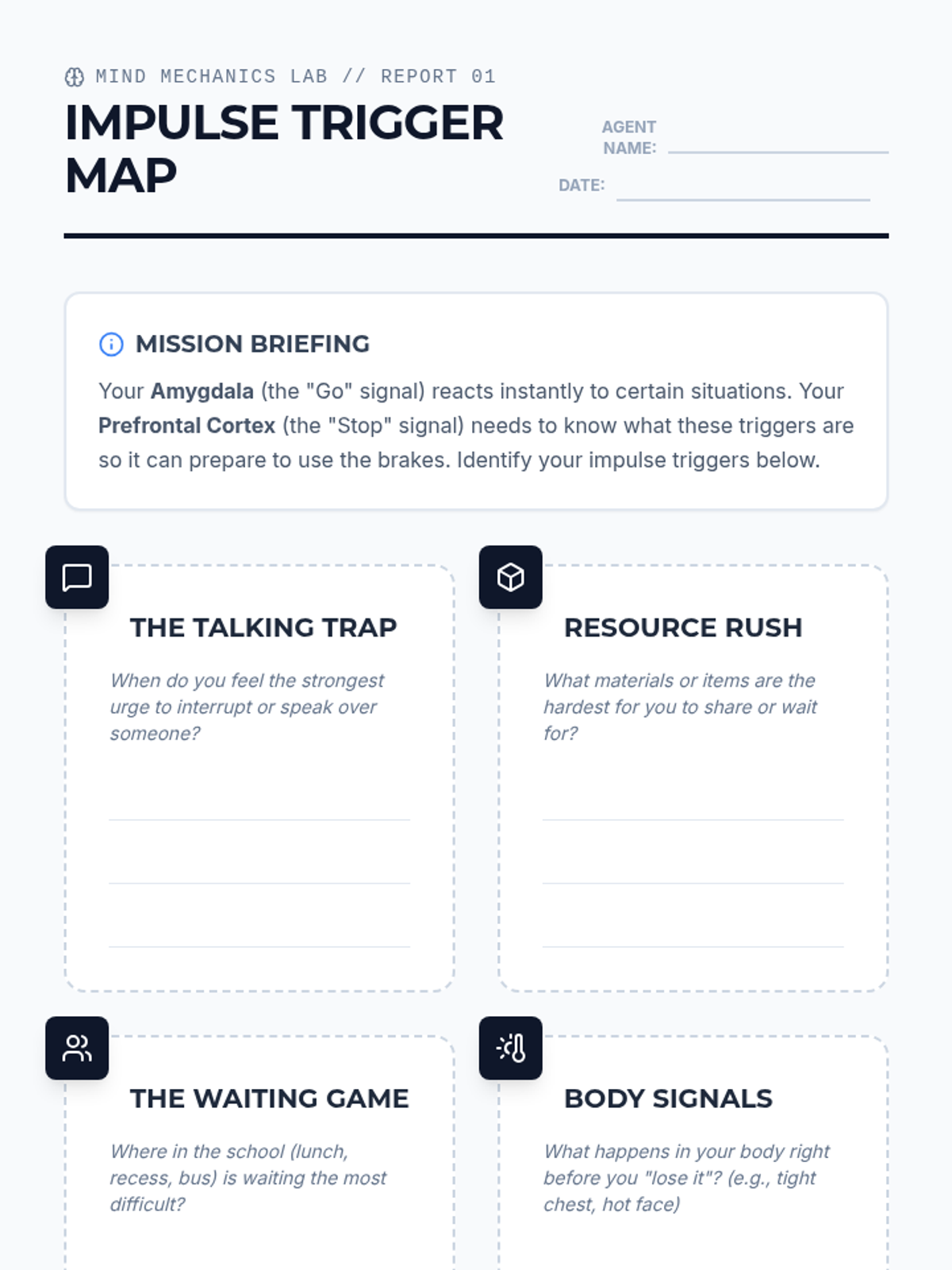 A 5-lesson sequence for 5th-grade students focused on post-dysregulation recovery. This series helps students move from shame to logic by externalizing behaviors, analyzing event timelines, practicing restorative apologies, and planning for future success.