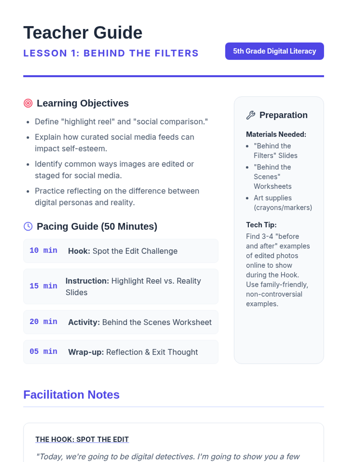A 5-lesson sequence for 5th graders focused on navigating the social-emotional and critical thinking challenges of social media, covering topics from body image and cyberbullying to misinformation and community building.