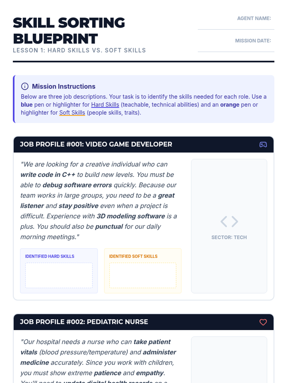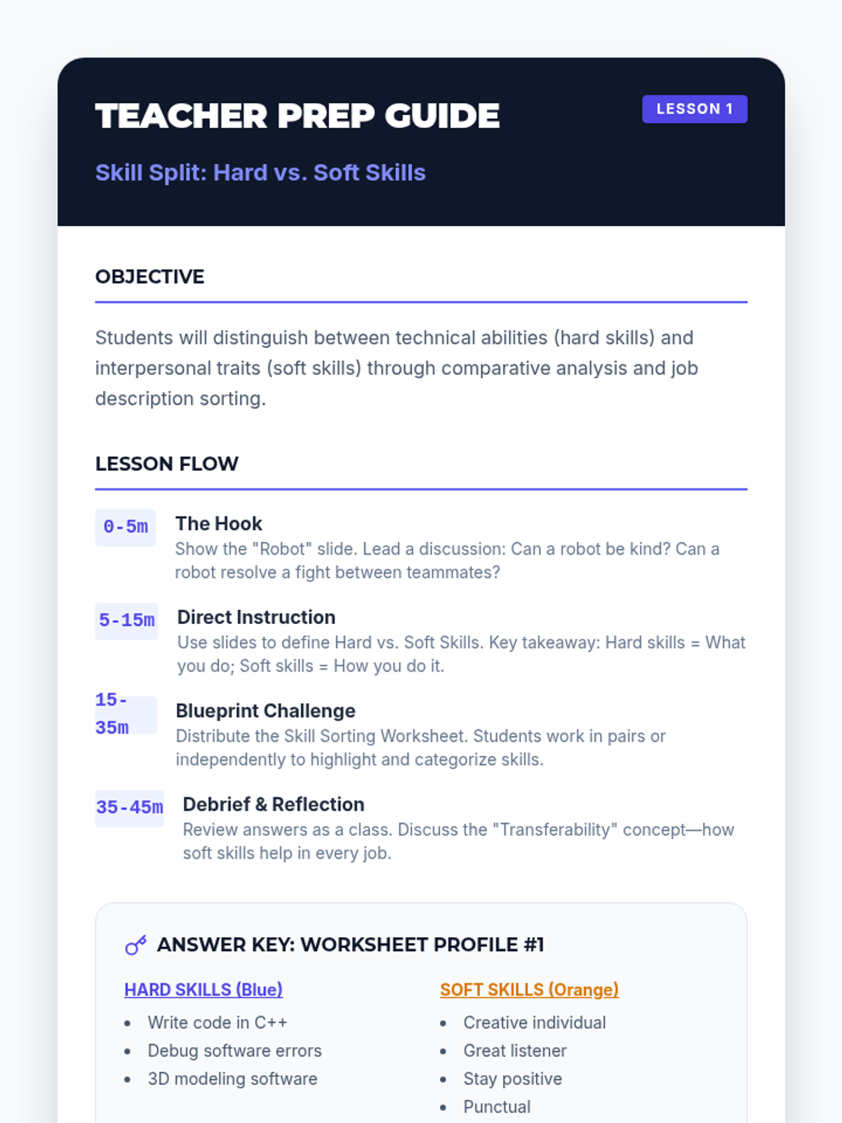 A 5-lesson sequence for 5th graders focused on developing interpersonal 'soft skills' for career success. Students explore the difference between hard and soft skills, practice communication and teamwork through games, and solve workplace problems.
