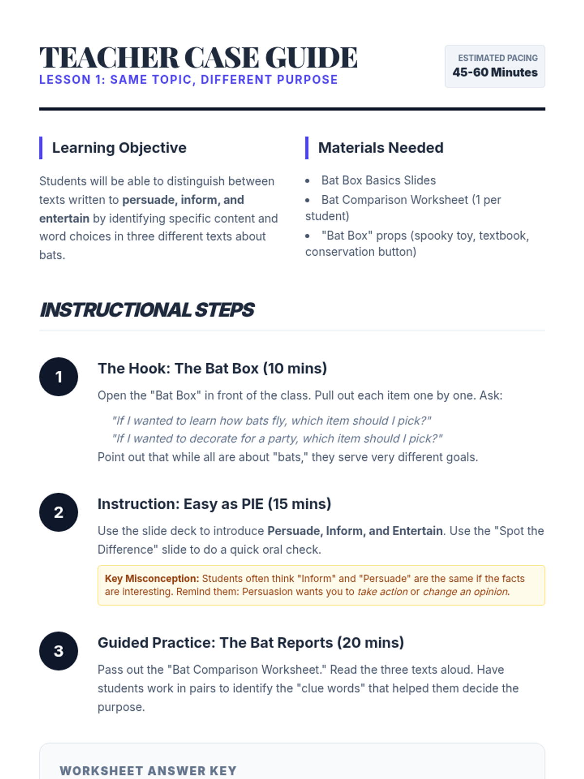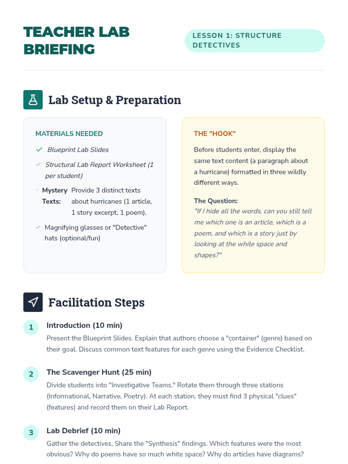 Detective Briefing Teacher Guide