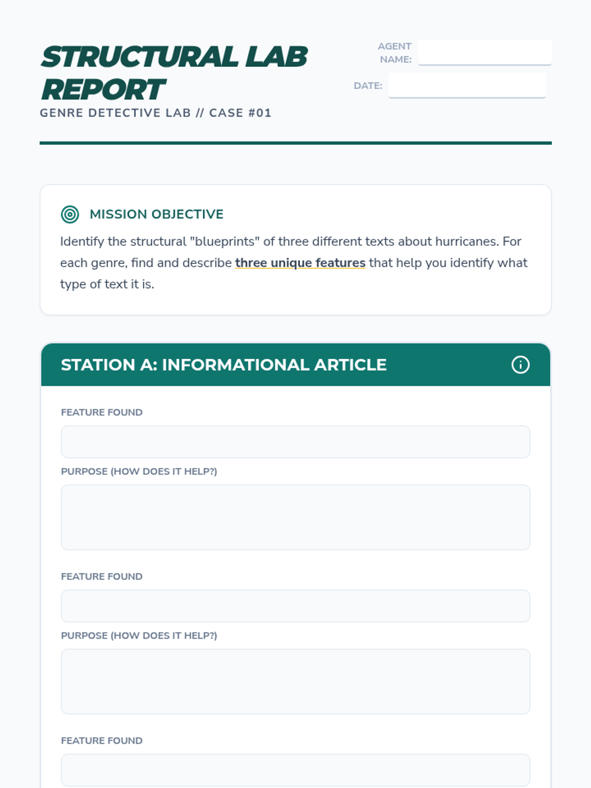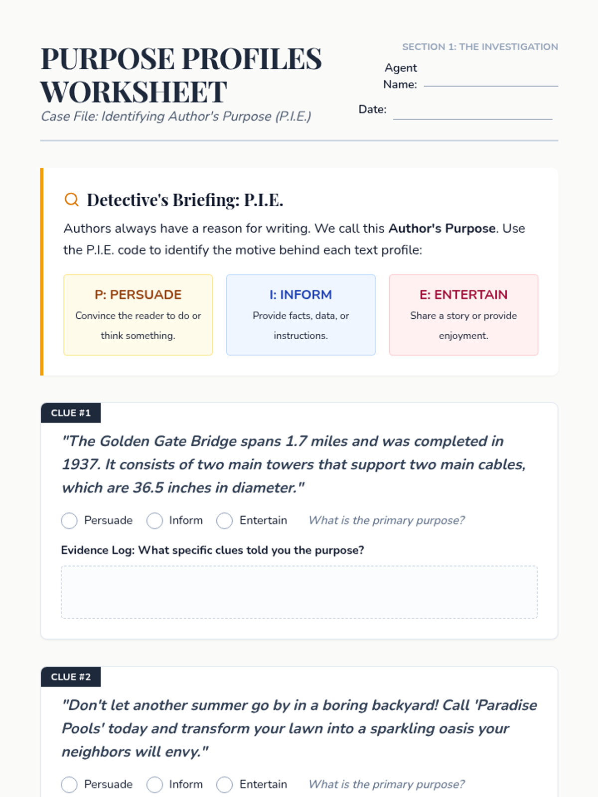 Clue Hunter Worksheet