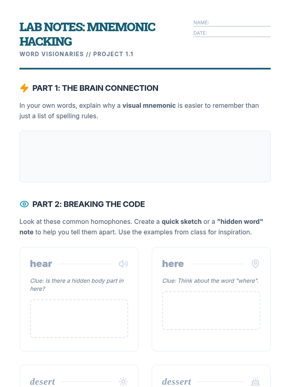A project-based sequence where 5th-grade students create visual mnemonics for homophones and homonyms, leveraging etymology and dual-coding to build a collaborative classroom dictionary.