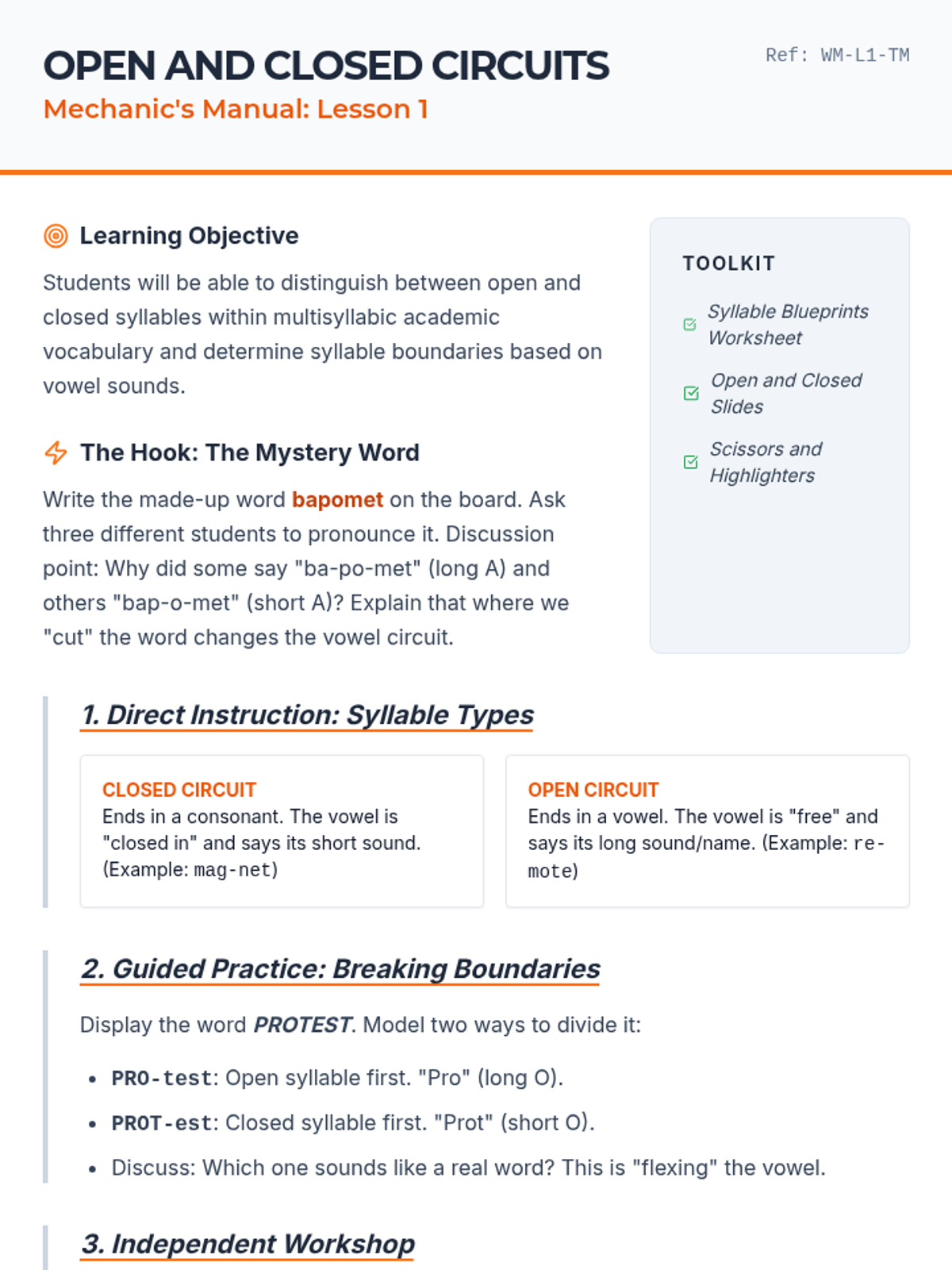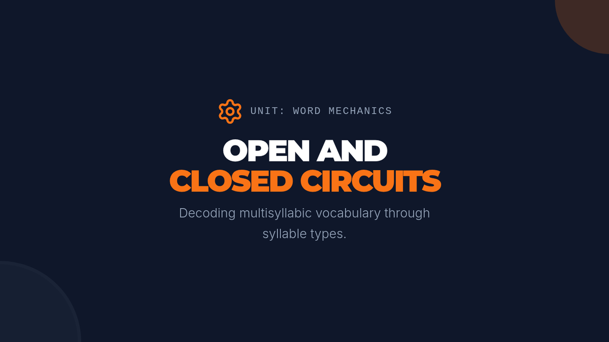 This sequence focuses on strengthening 5th-grade students' ability to decode complex, multisyllabic words by reviewing and applying the six syllable types. Students progress from closed and open syllables to vowel teams, r-controlled vowels, and consonant-le, culminating in the application of these skills to academic texts.