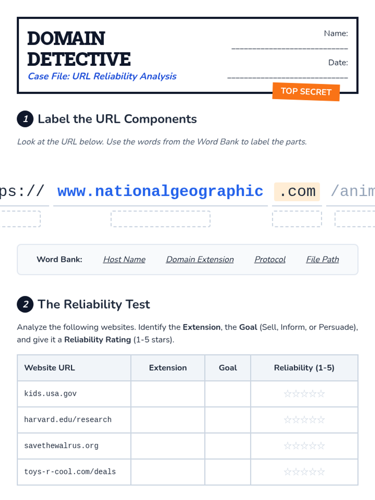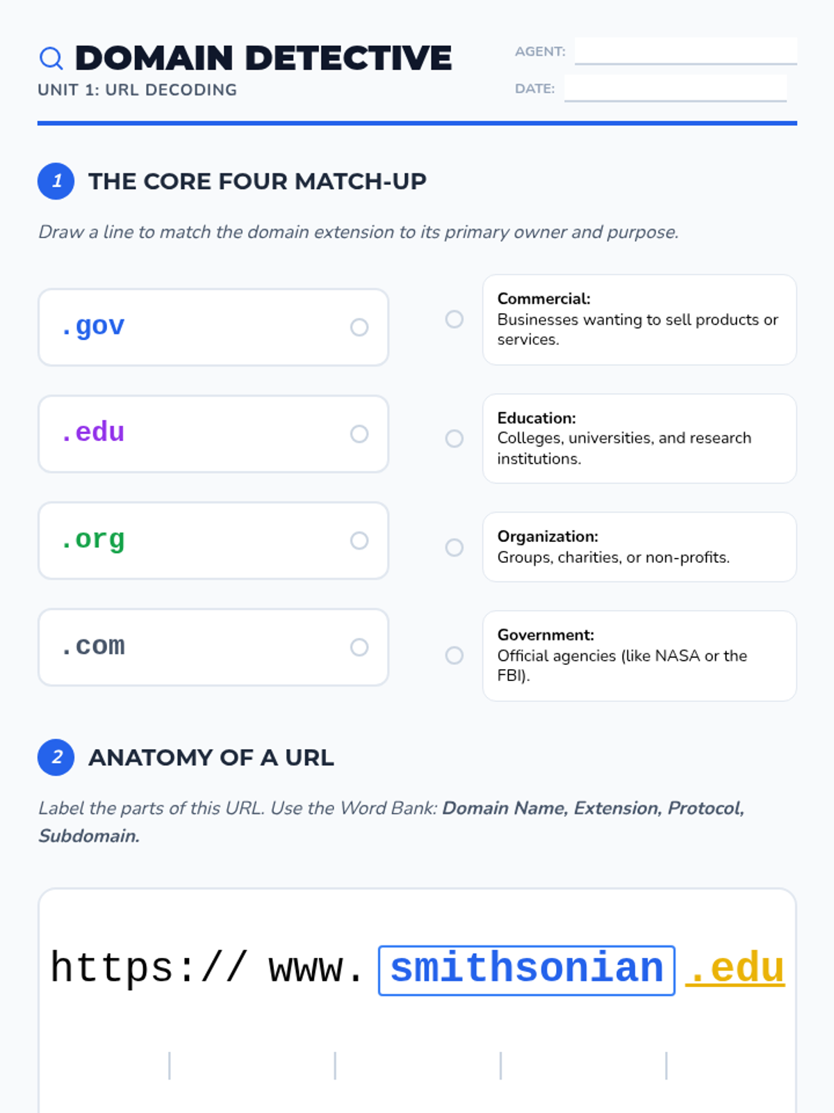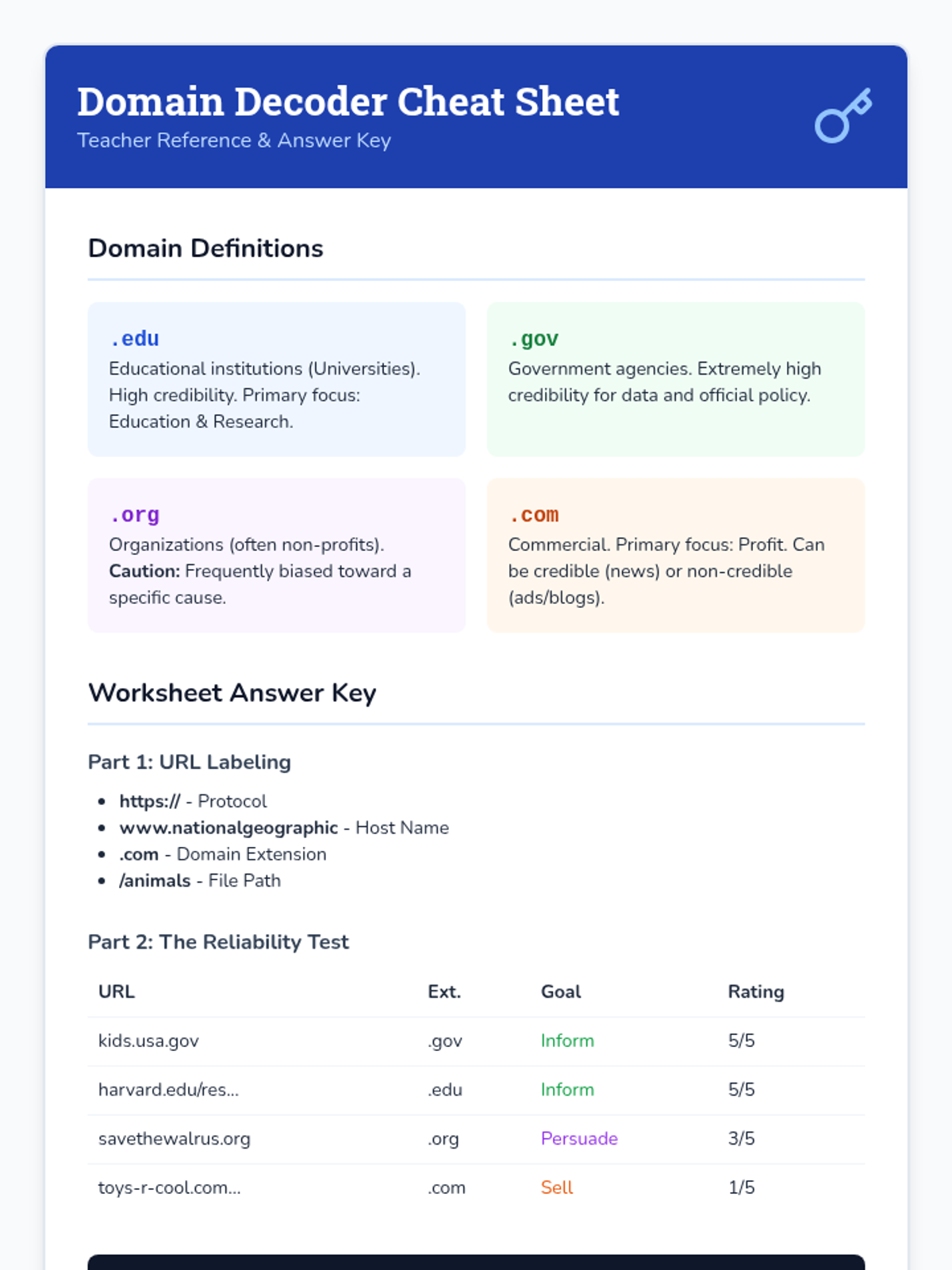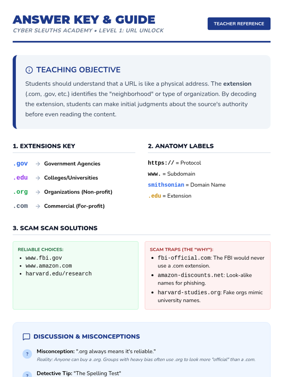 A comprehensive 5th-grade sequence on evaluating website credibility, bias, and reliability. Students act as 'Cyber Sleuths' to decode URLs, identify author intent, practice lateral reading, and detect digital hoaxes.