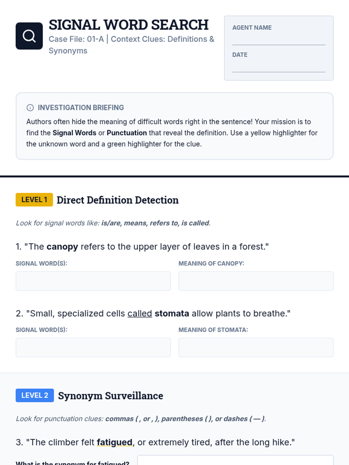A comprehensive sequence for 5th-grade ELL students to master vocabulary acquisition through context clues and morphological analysis, framed as a detective investigation.