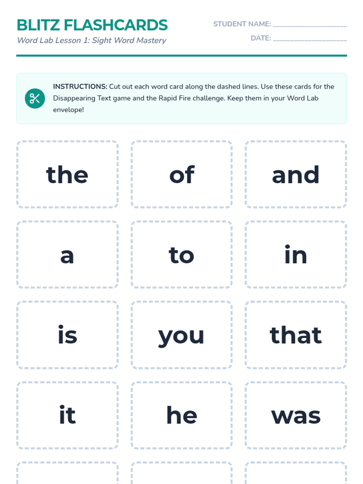 This sequence targets beginner EL students, focusing on the top 20 high-frequency 'glue' words. Students progress from rapid-fire recognition to physical sentence construction and creative story writing, building the foundation for reading fluency and syntactic understanding.