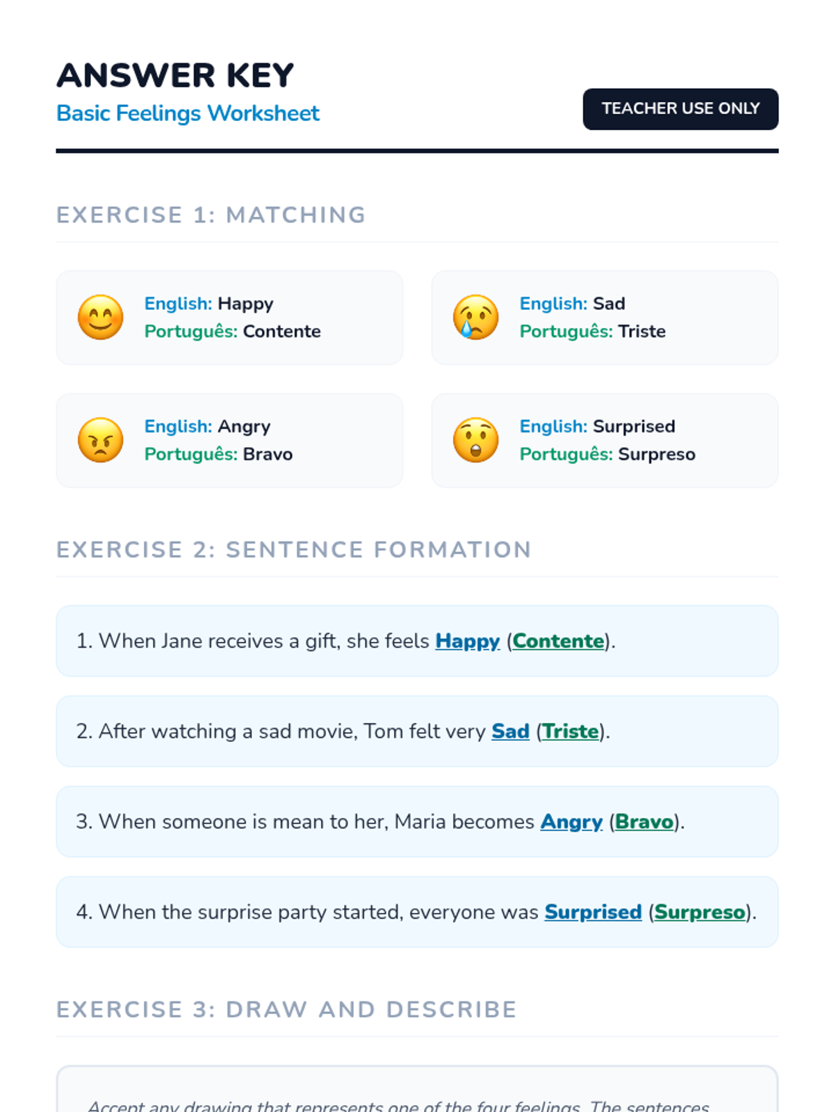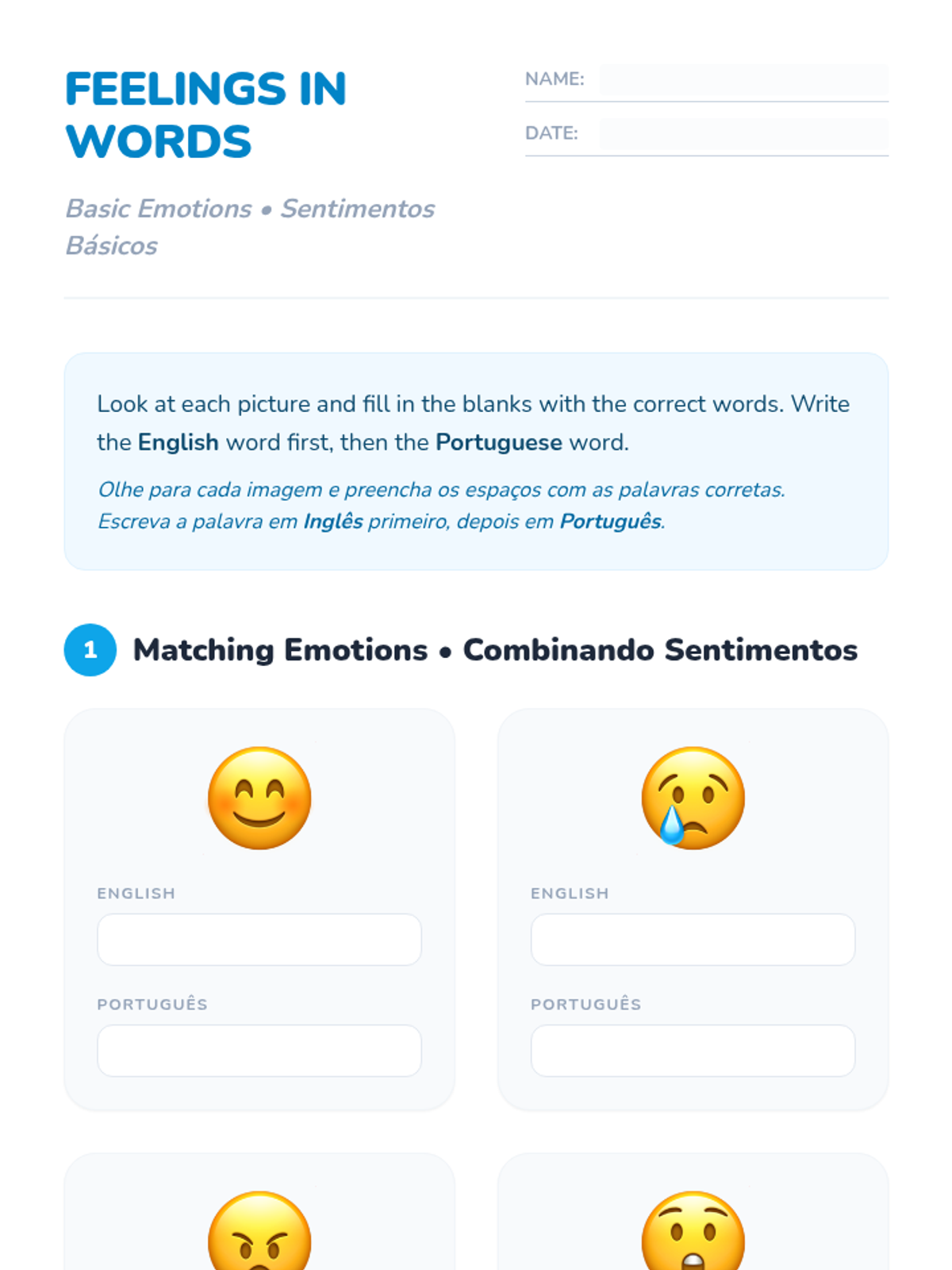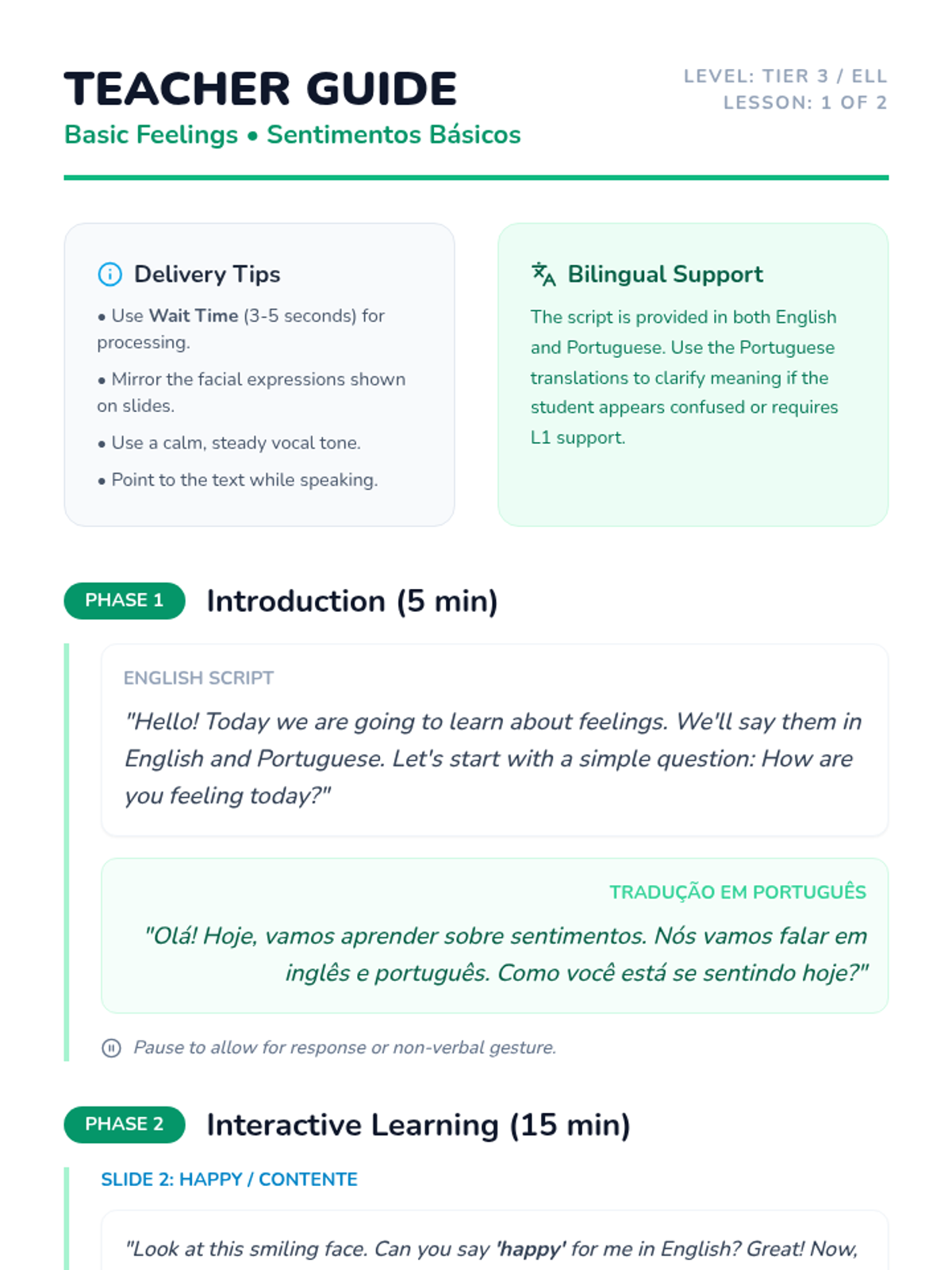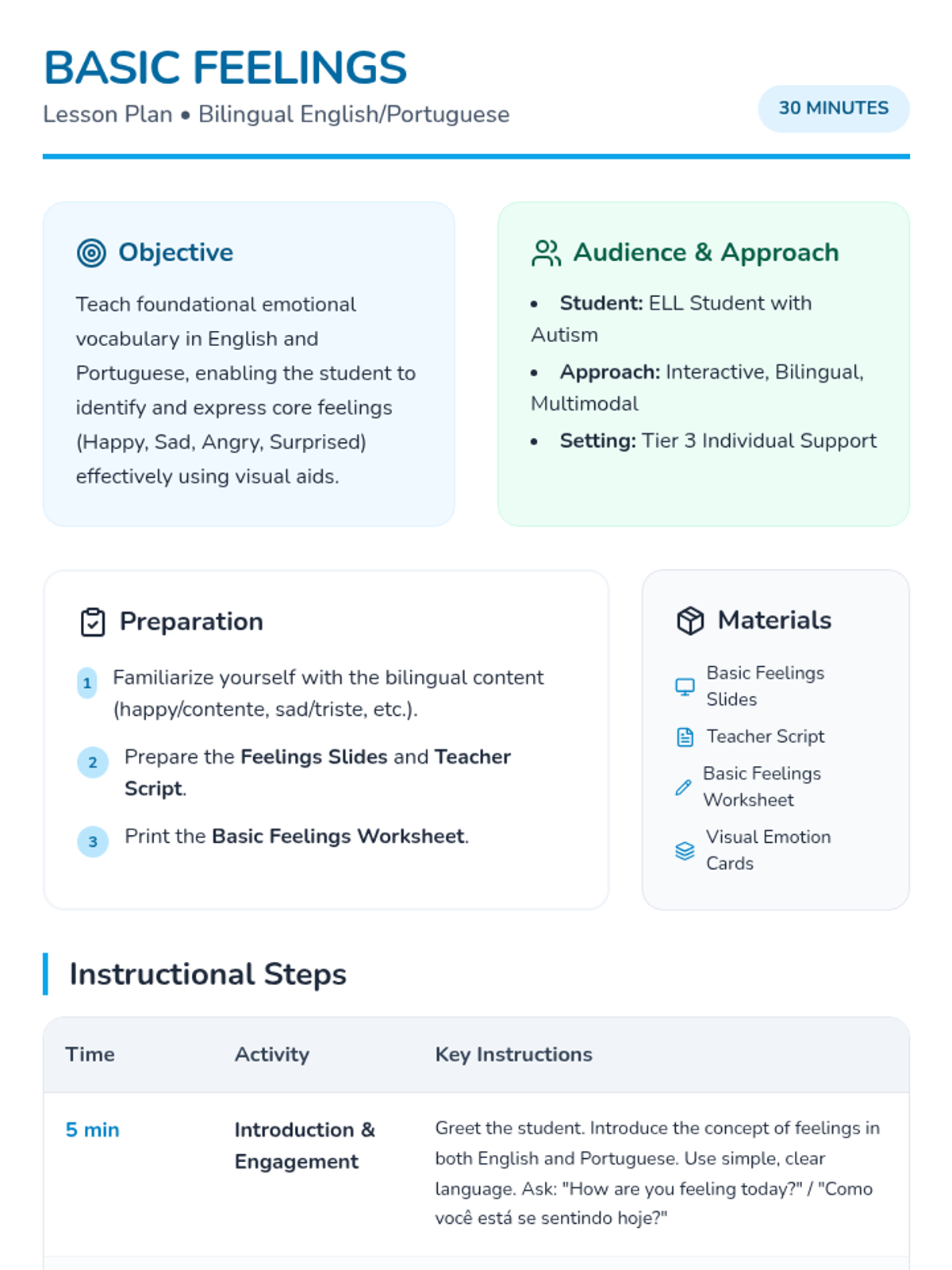 A bilingual sequence designed for ELL students with autism to develop emotional literacy in both English and Portuguese, moving from basic to complex feelings.